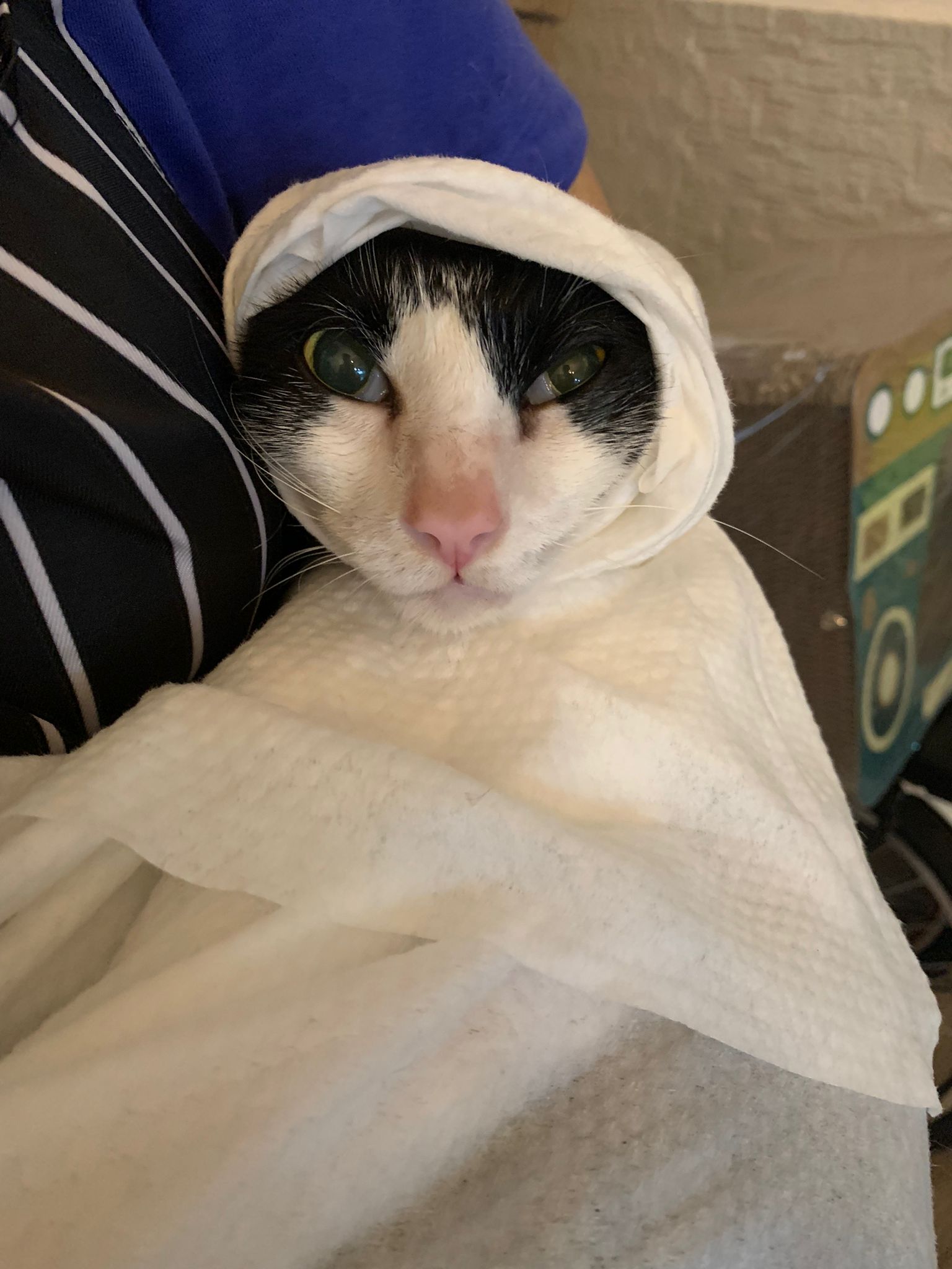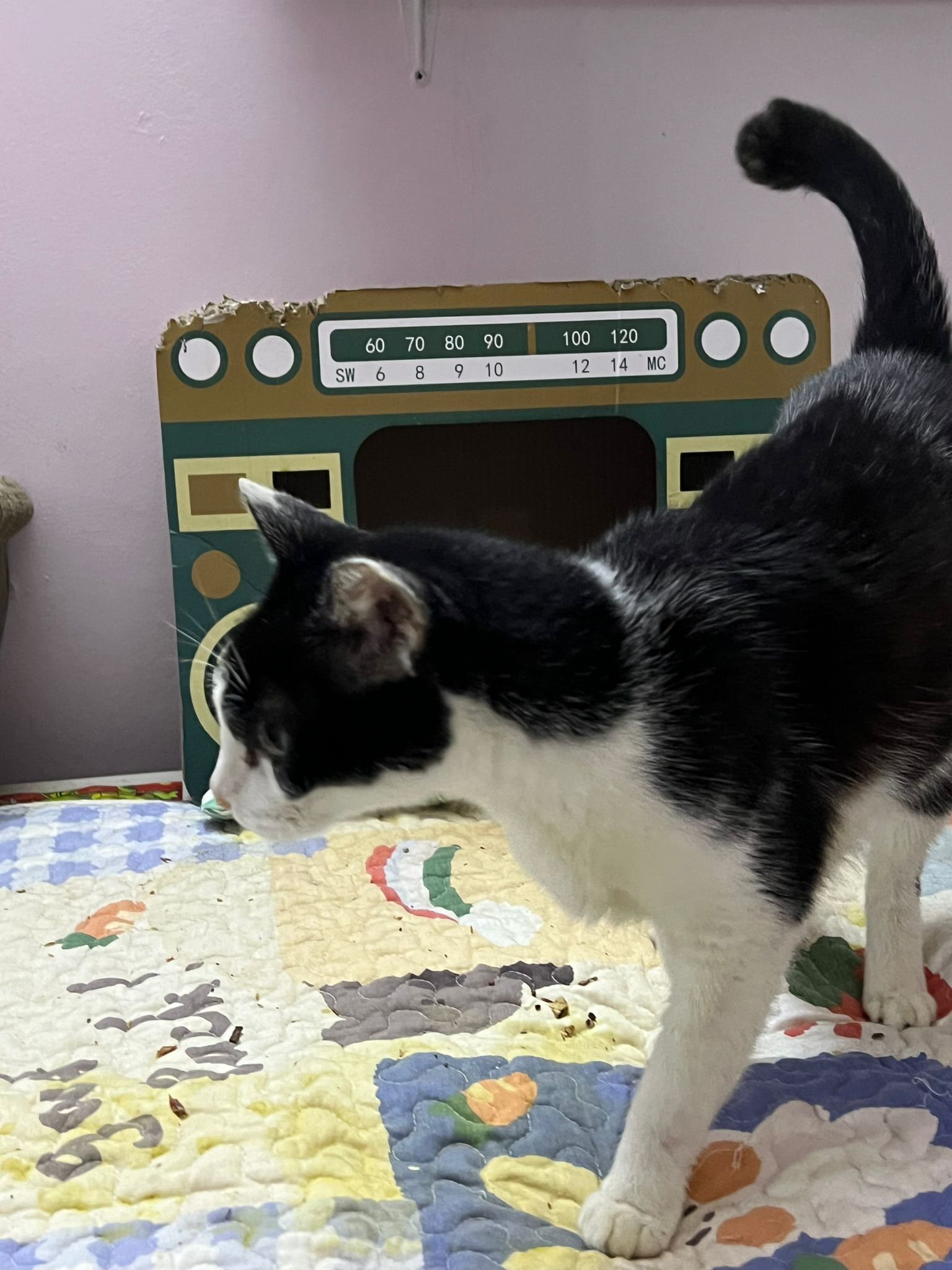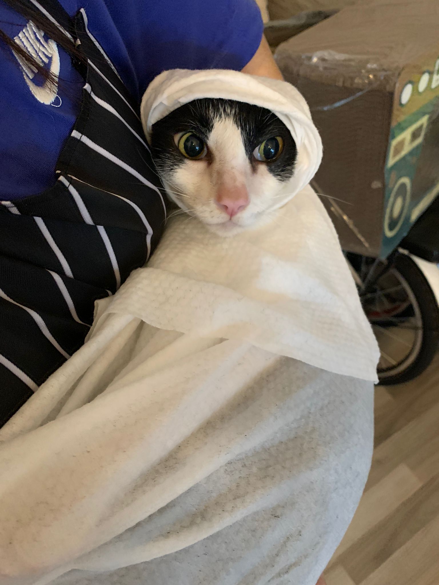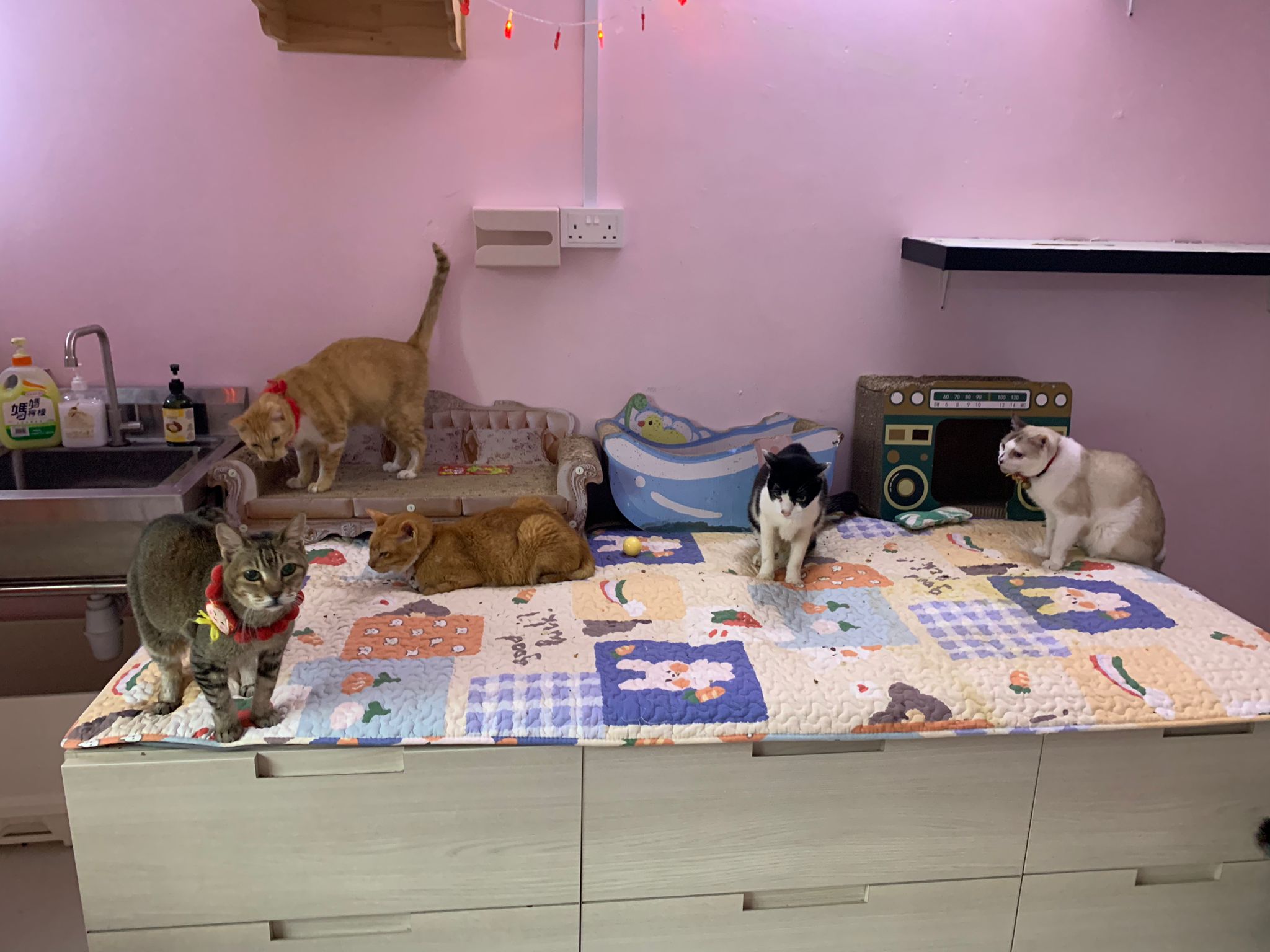12.40pm: back to 猫房 4G, I open carrier box n I go prepare his bed in cage.