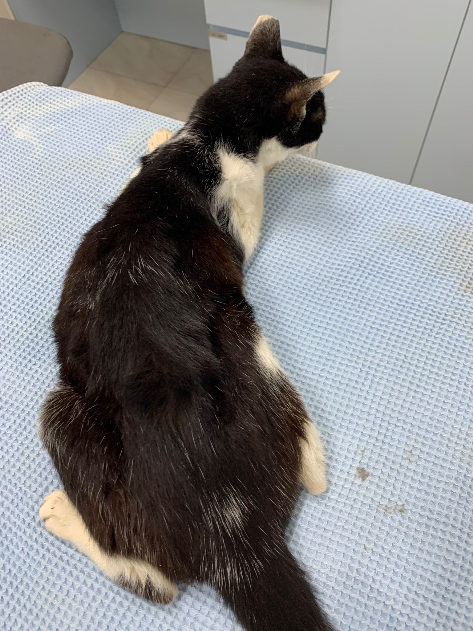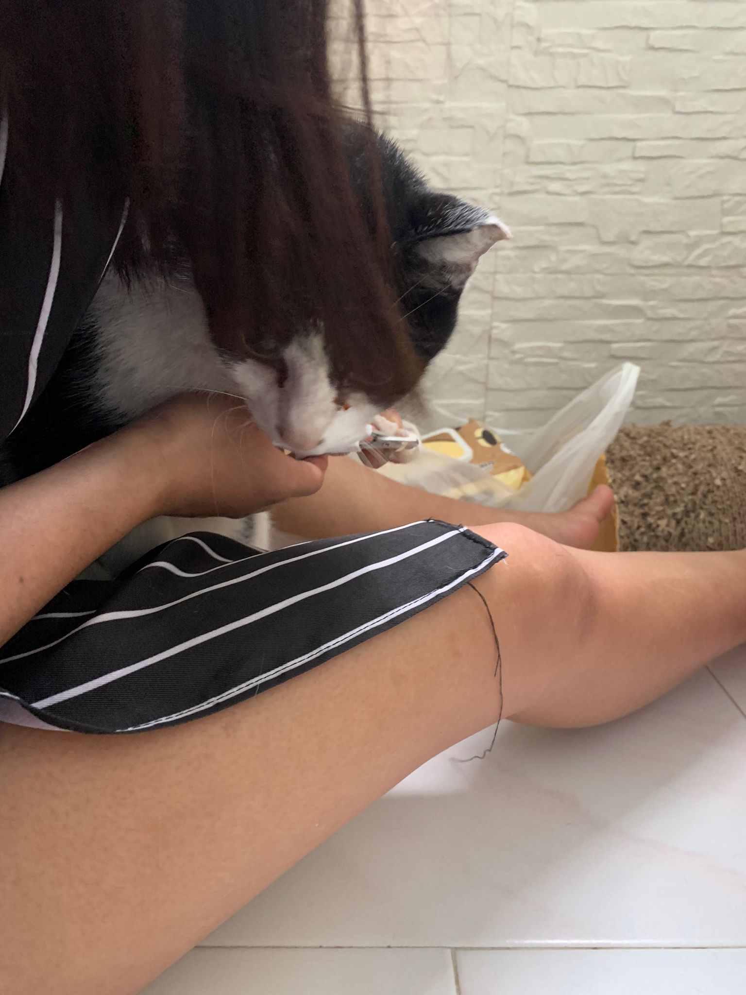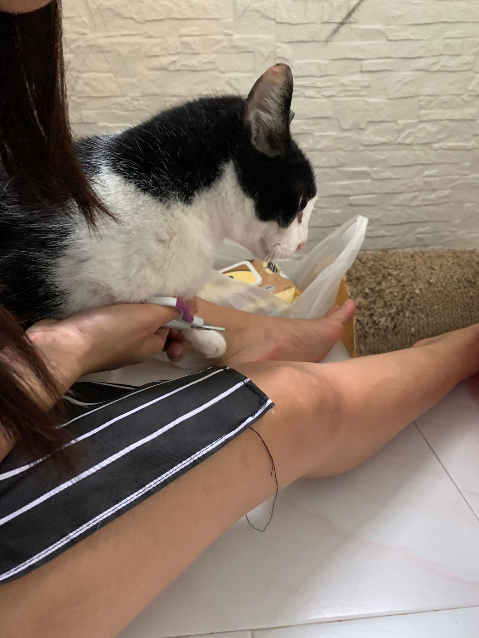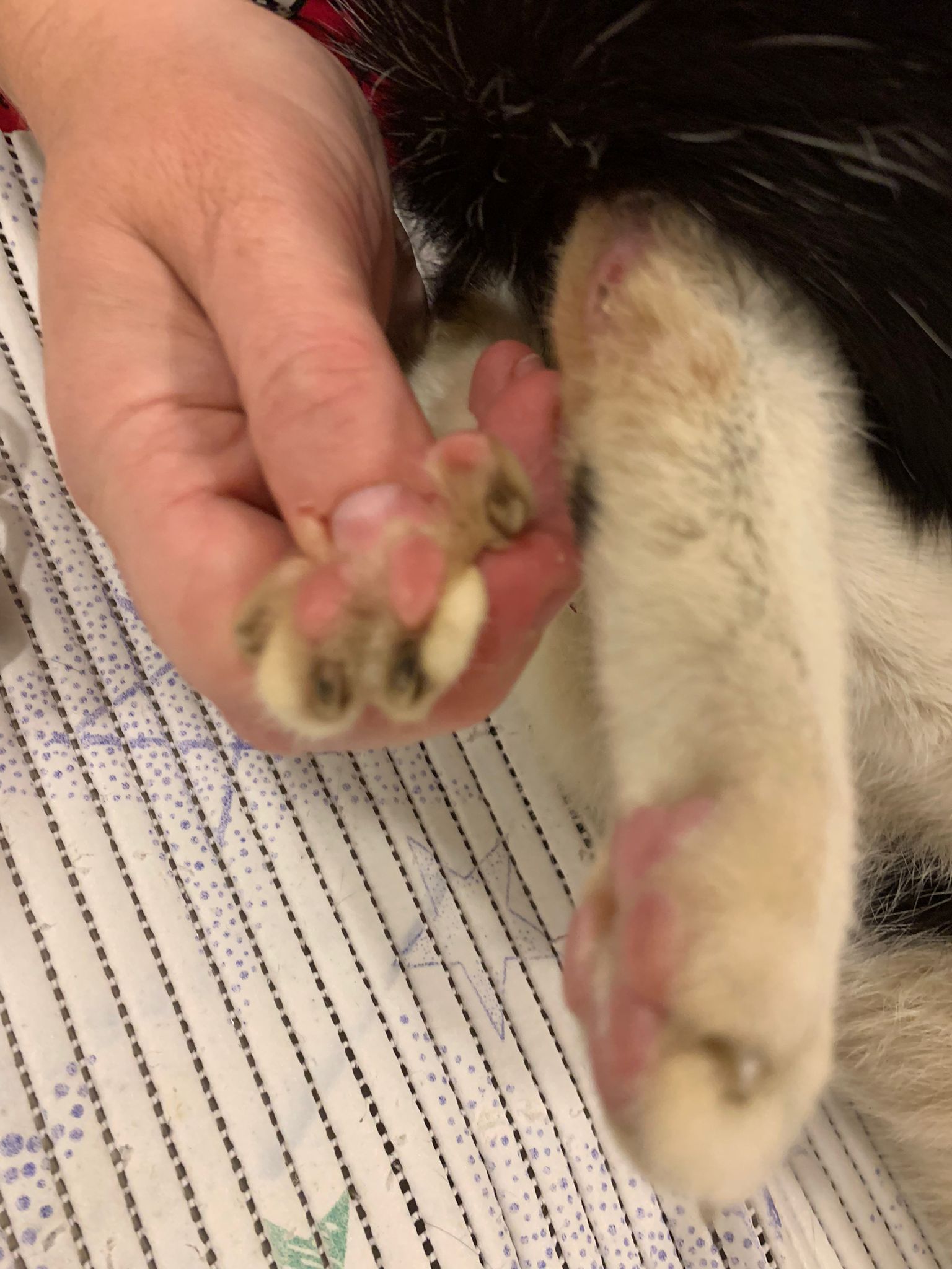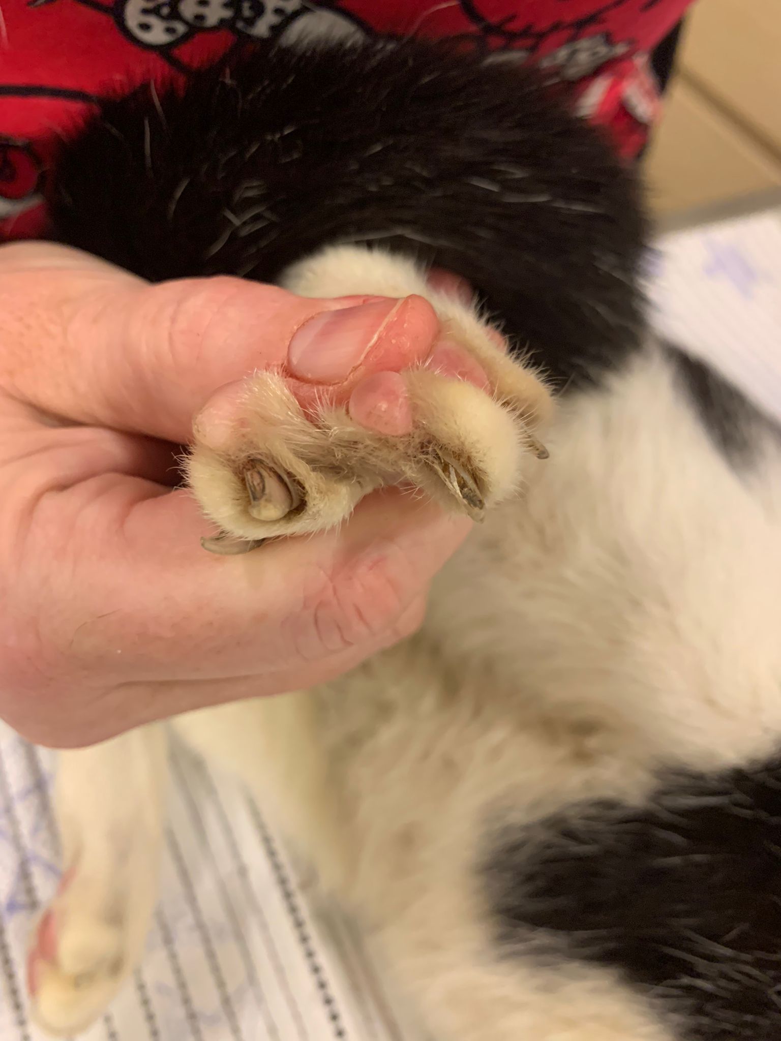 I had checked and press her leg, no injury, she isn’t in pain. Nails length ok.
