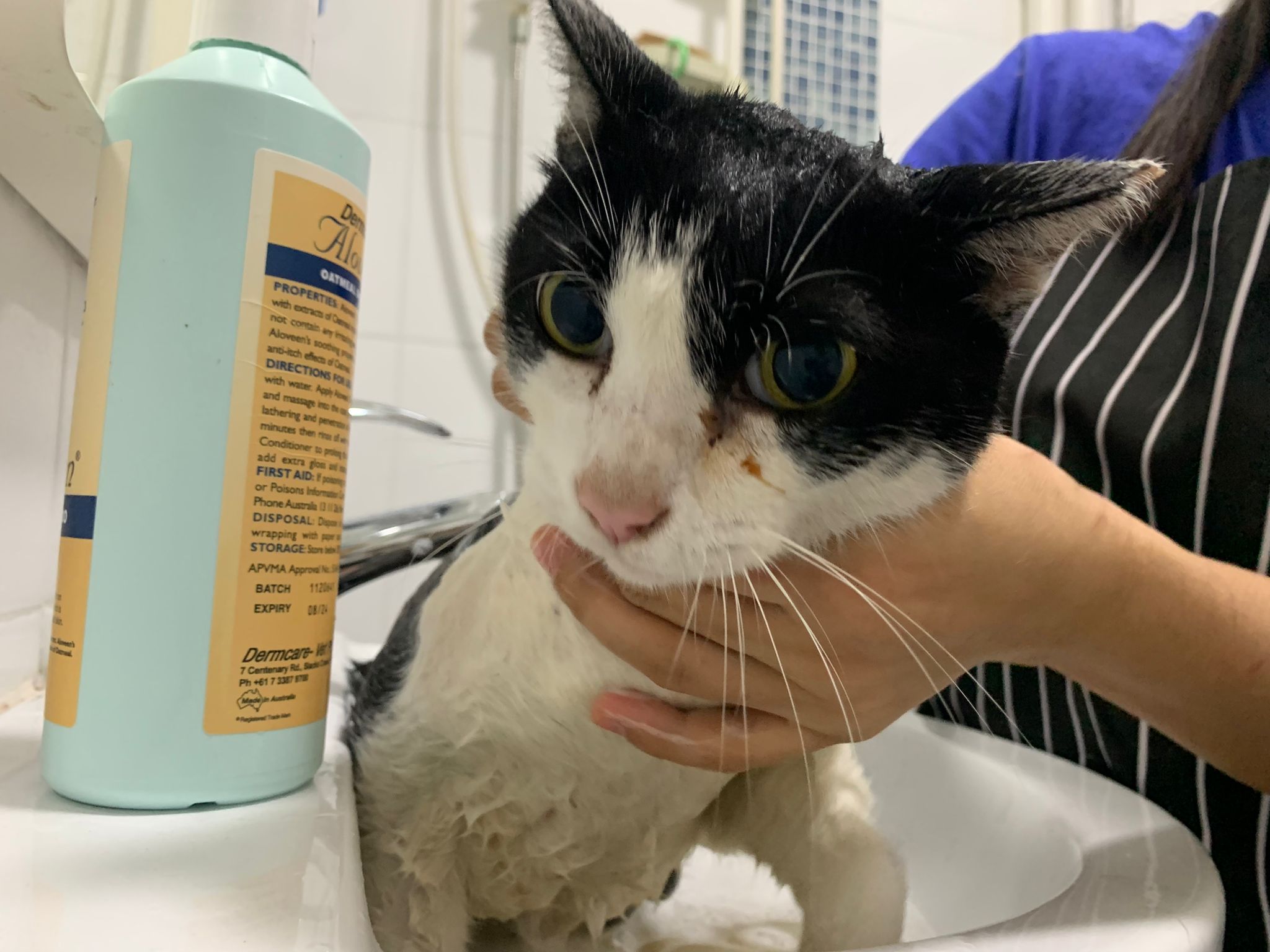 616pm: N#02 sent me: “she suddenly came up with like glue all of over her side and we tried washing it off with water but it’s not coming off” – I thought she is injured n now pus burst?