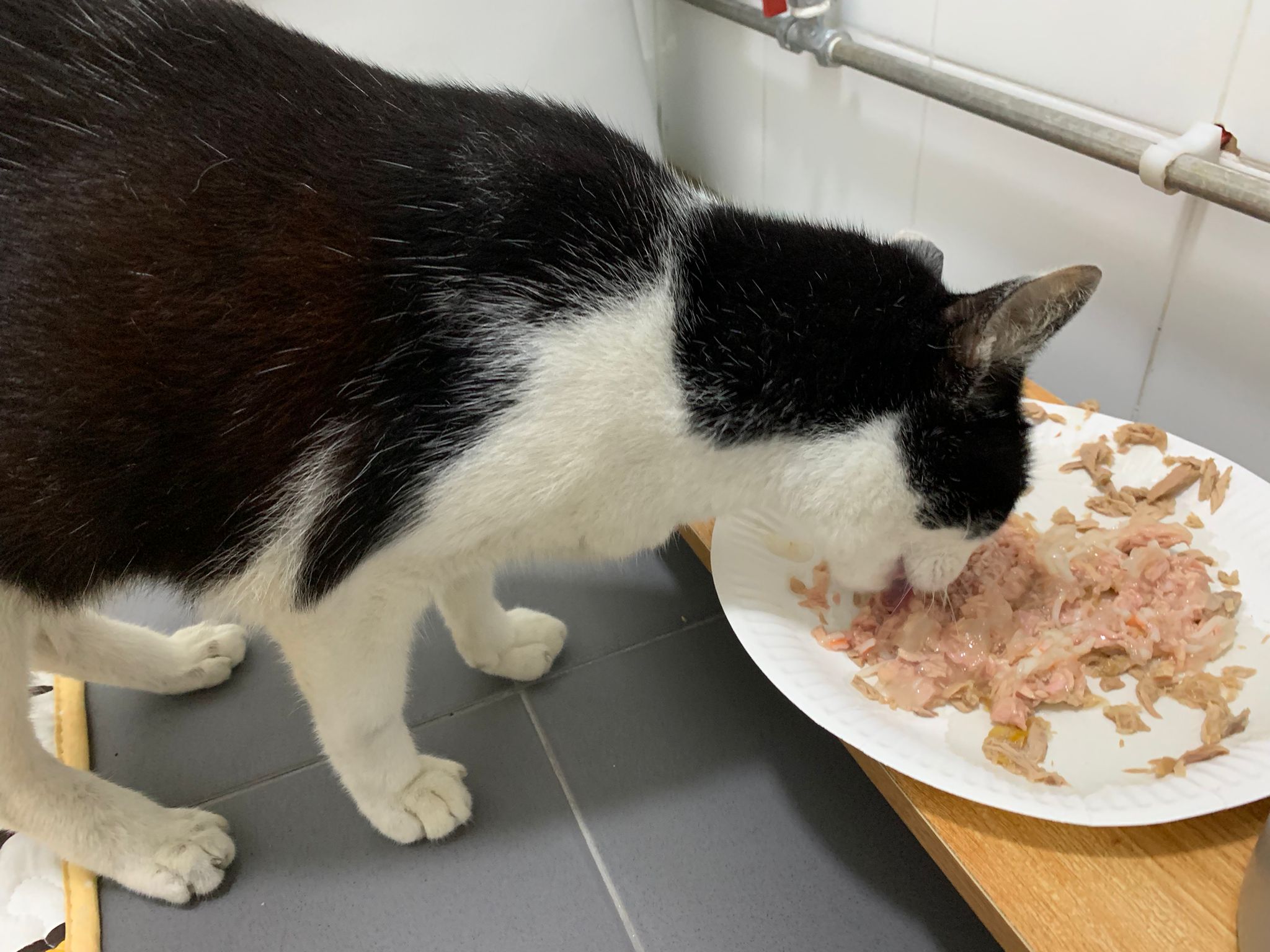 730am: met xiao lian, given him tuna w white fish only ate 8% – thrown.