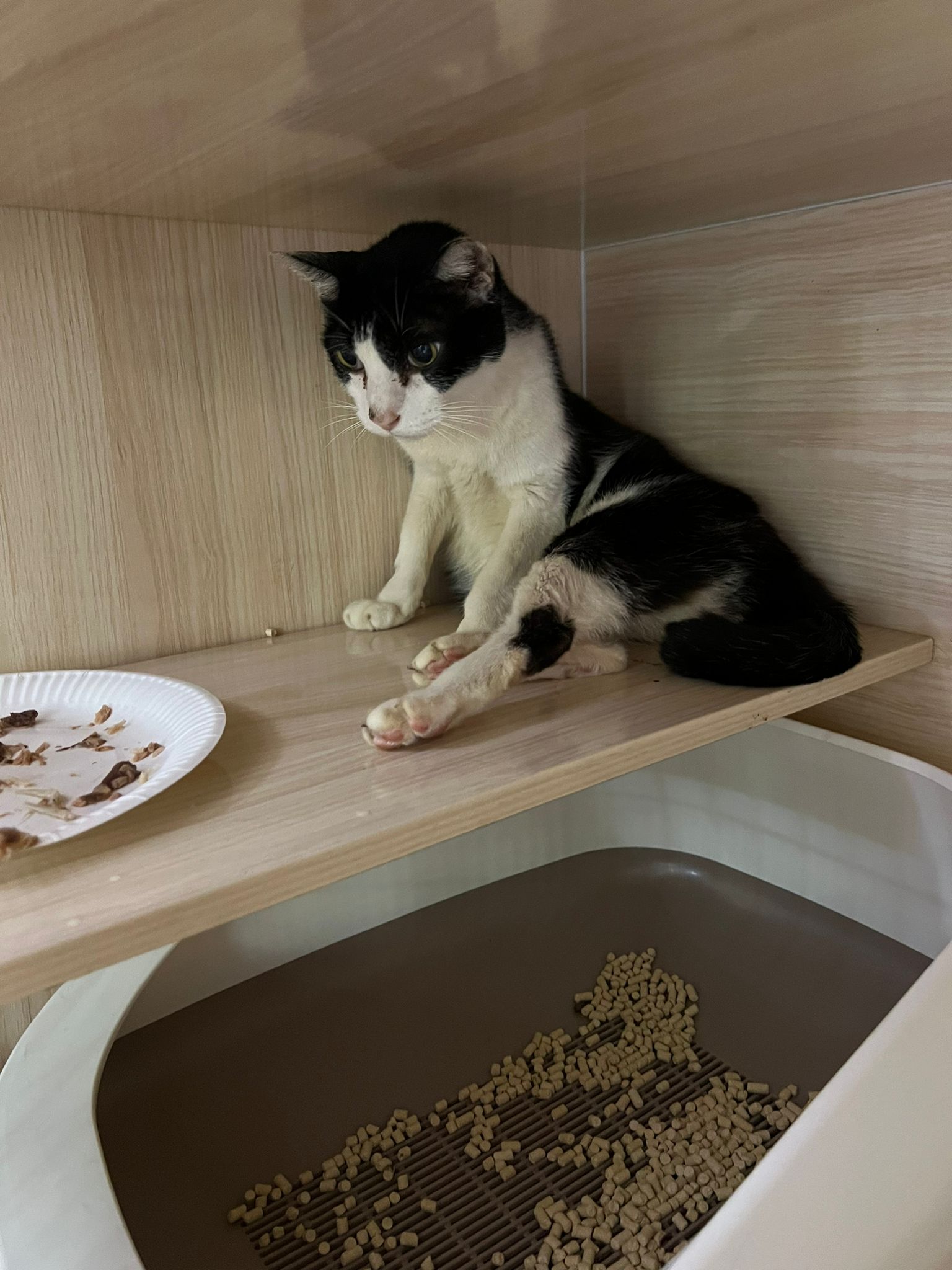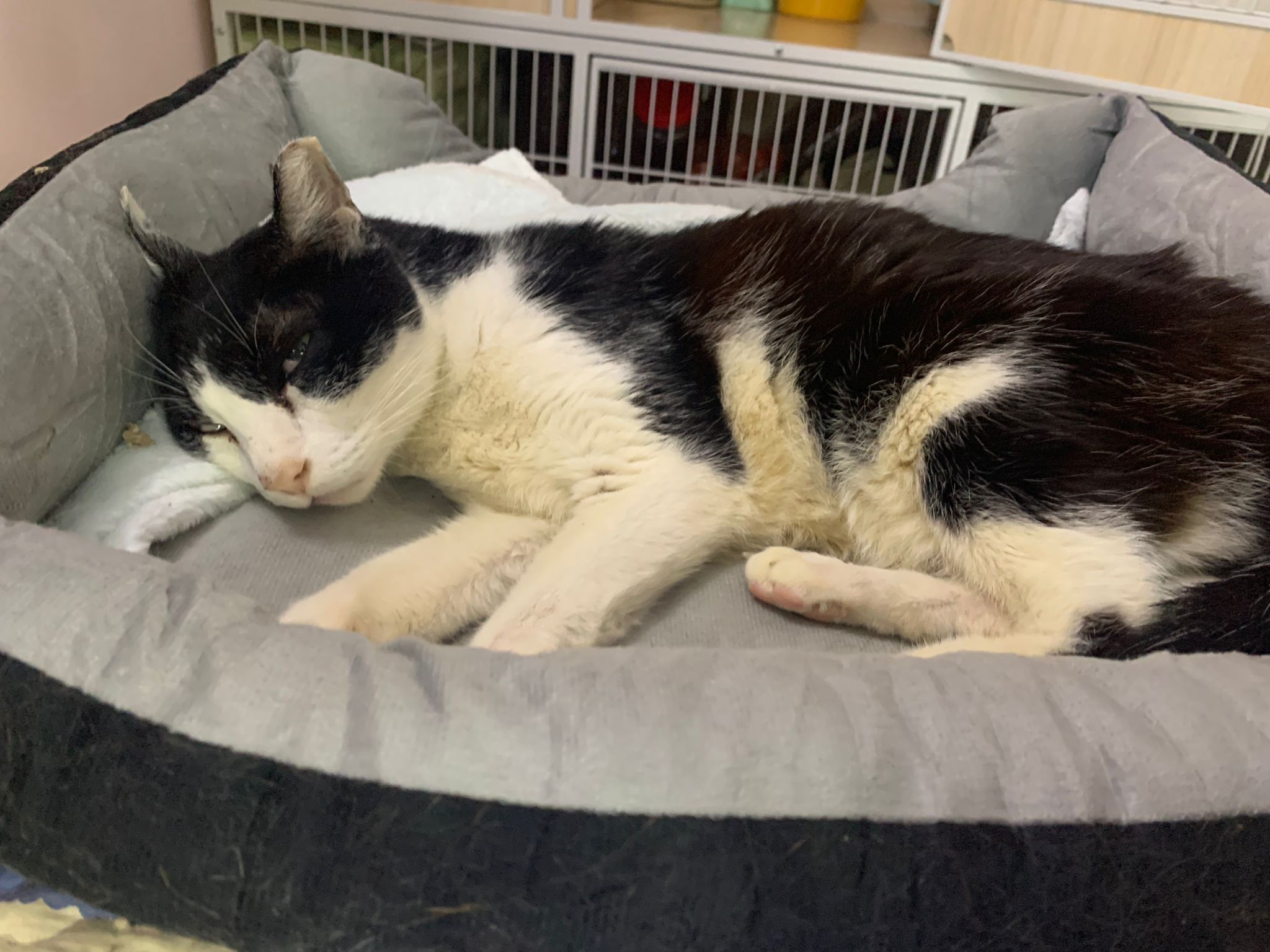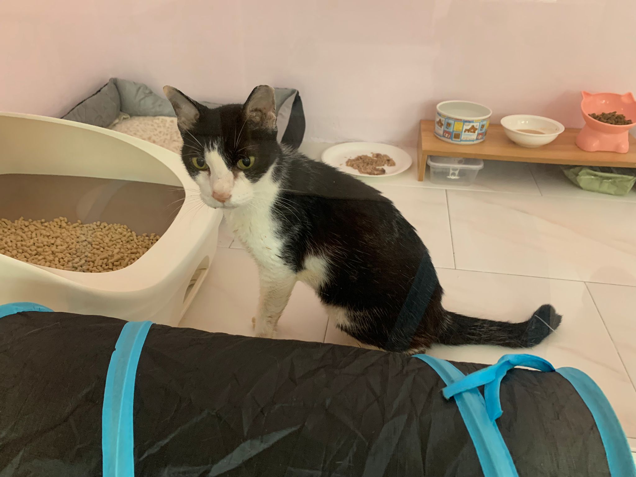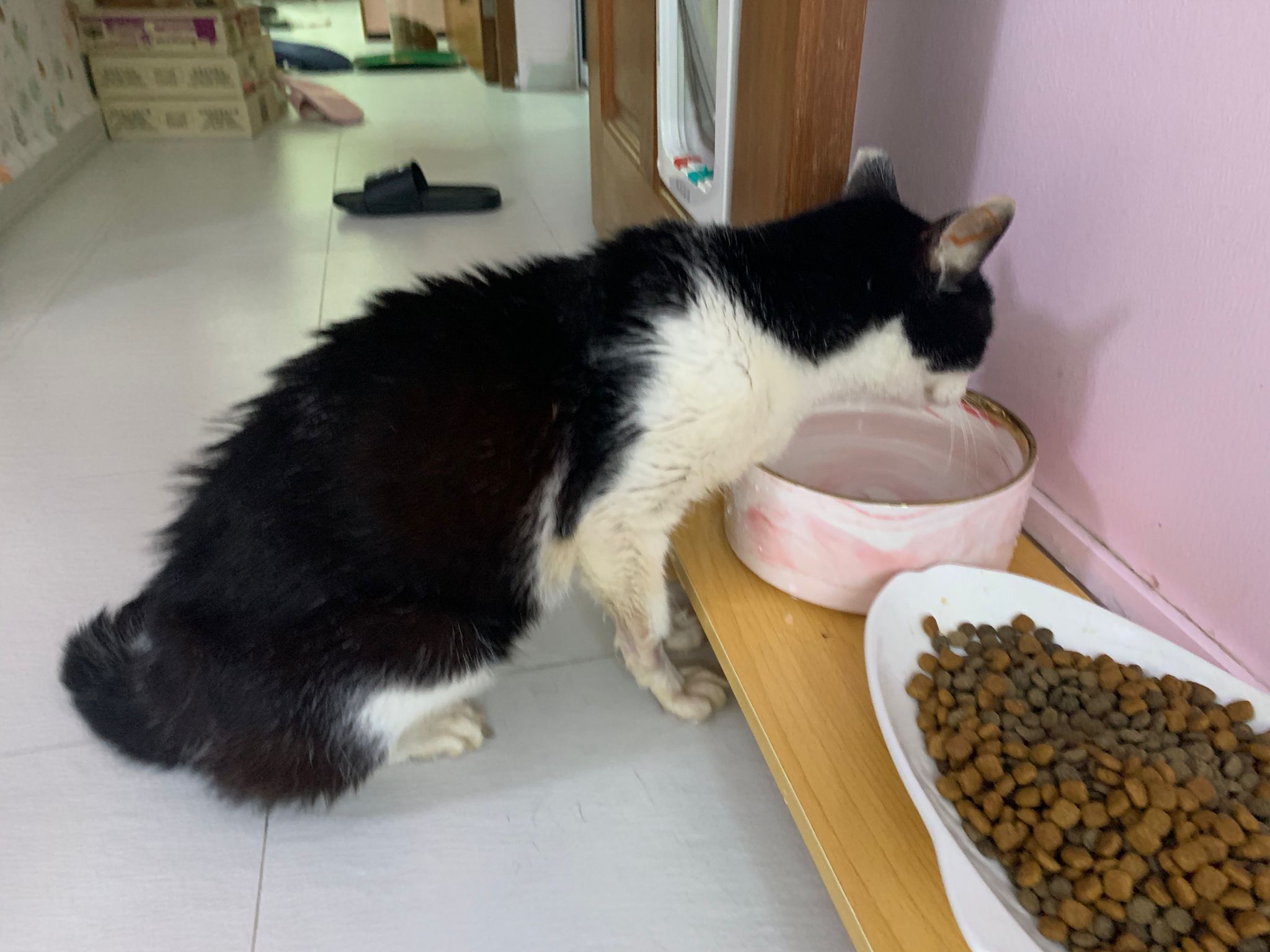 Community Cat – he isn’t well, w kidney problem and pple still keep giving him nonsense food outside. Told him when I’m subcutting him at the void deck that I’ll drag as long as possible, for him to be outdoor to be in the familiar world he is in, to be w wawa, to be w the trees grass basketball court chairs letterbox he is used to. Let him enjoy. 8.2.24 is the date that no choice alr, he had been hiding under cars, lose more than 10% of weight within 10 days. Anemic and worsen kidneys. He is 猫房 cat now.