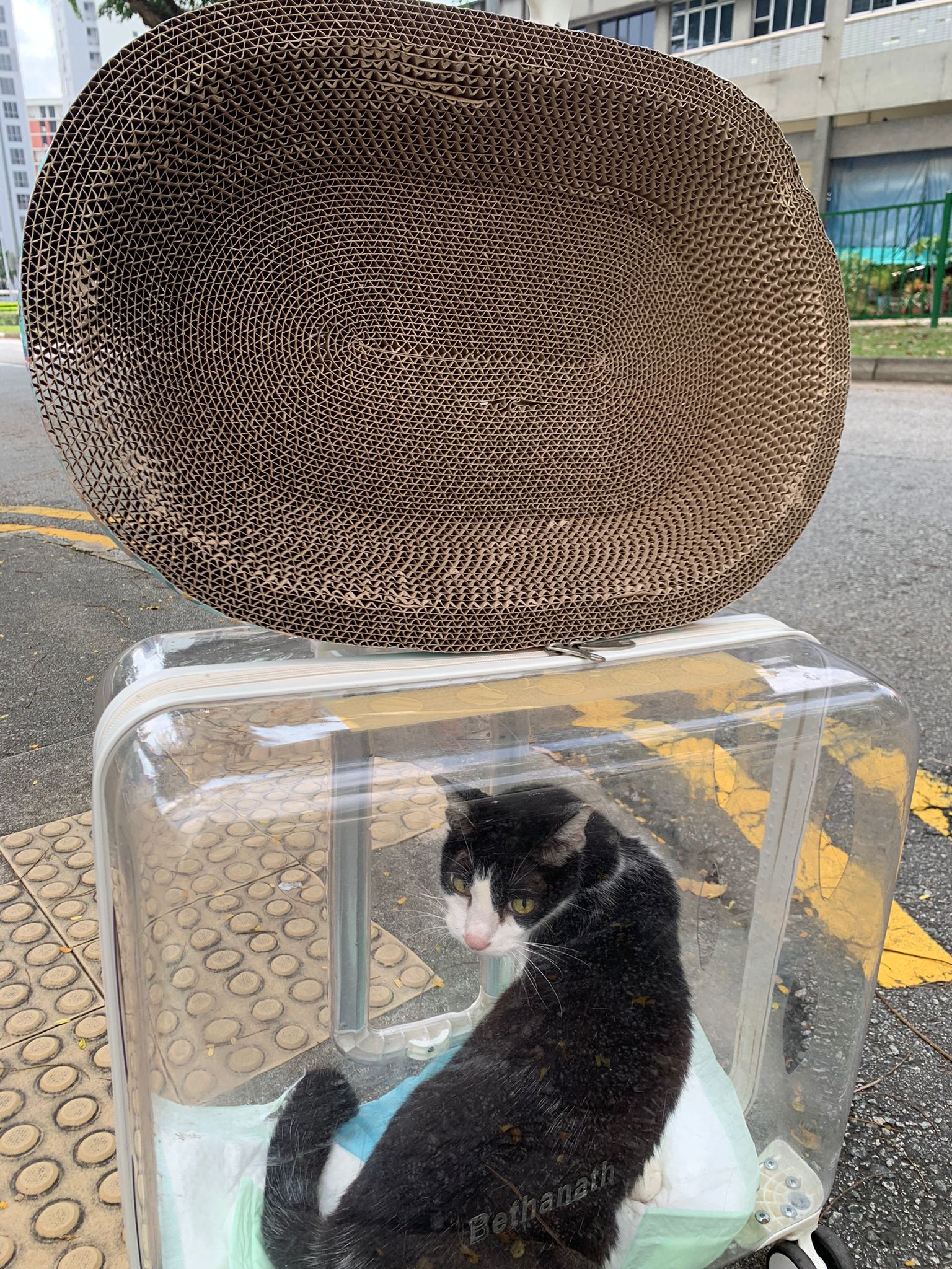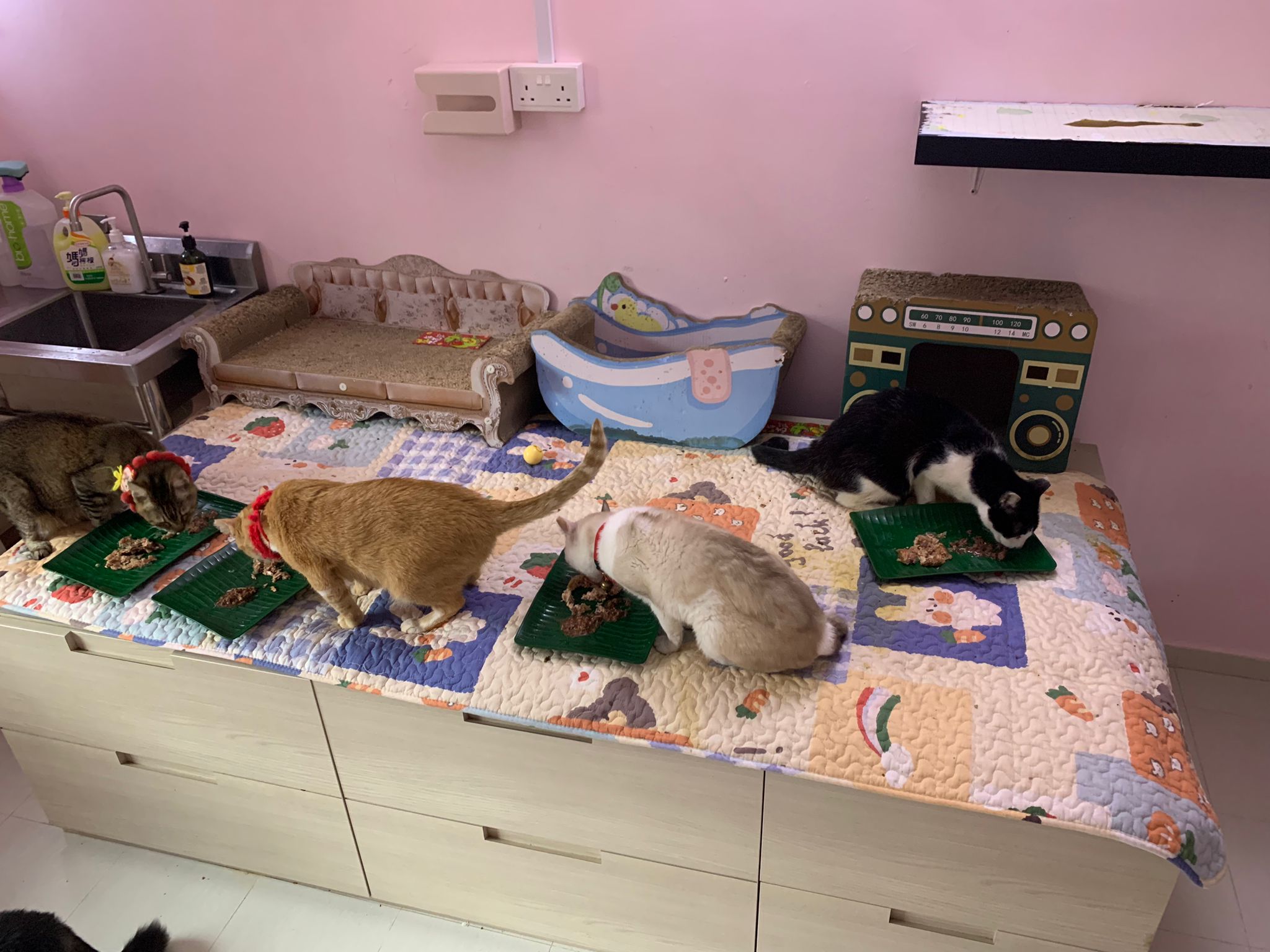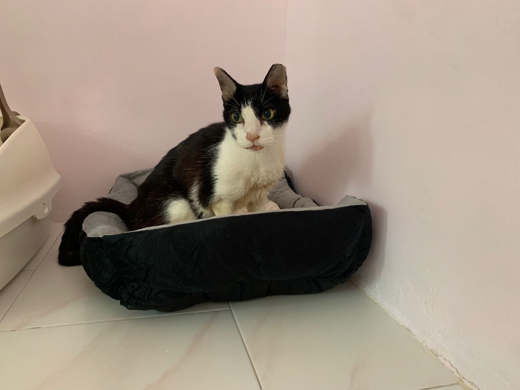 Community Cat – he isn’t well, w kidney problem and pple still keep giving him nonsense food outside. Told him when I’m subcutting him at the void deck that I’ll drag as long as possible, for him to be outdoor to be in the familiar world he is in, to be w wawa, to be w the trees grass basketball court chairs letterbox he is used to. Let him enjoy. 8.2.24 is the date that no choice alr, he had been hiding under cars, lose more than 10% of weight within 10 days. Anemic and worsen kidneys. He is 猫房 cat now.