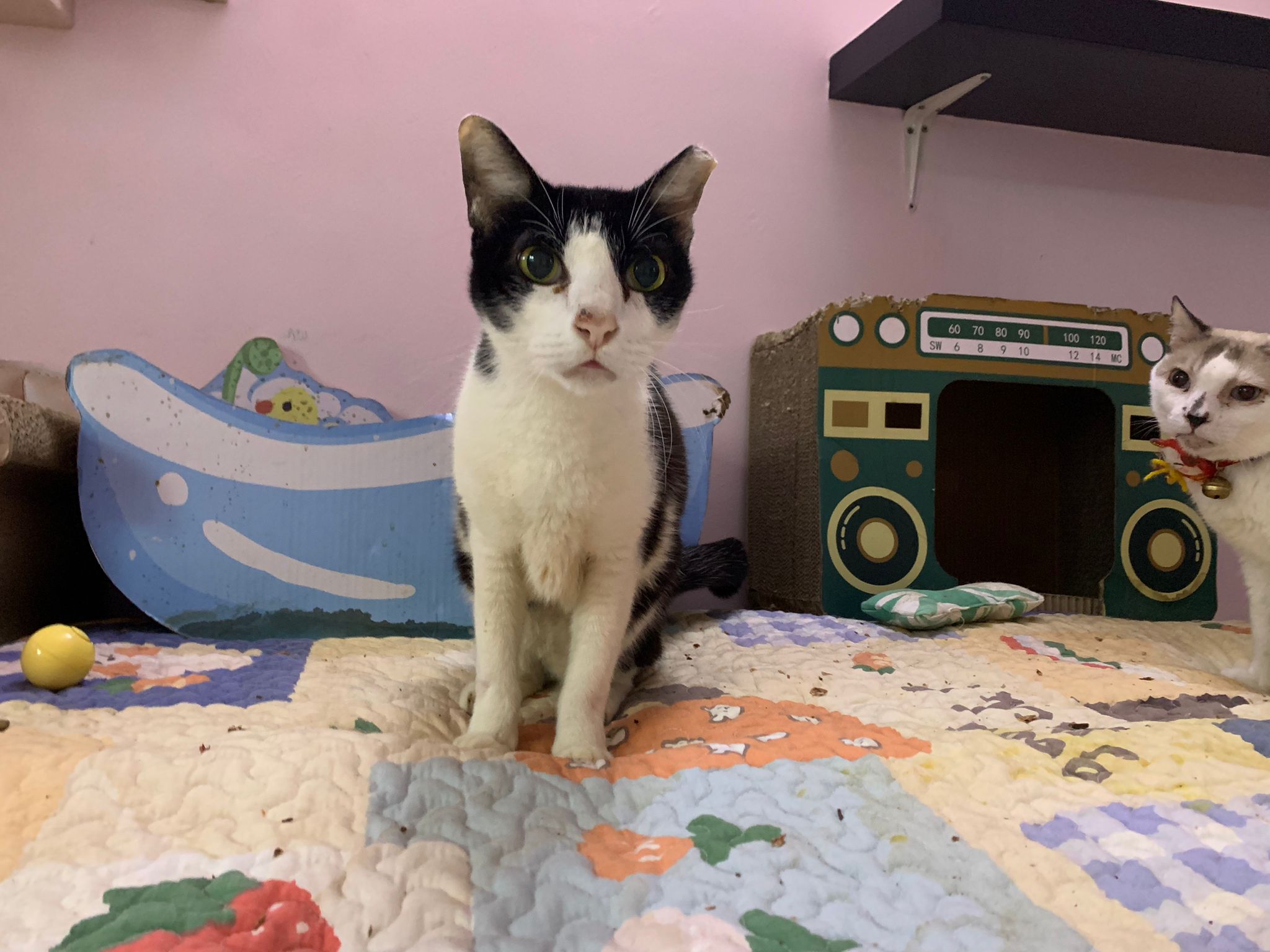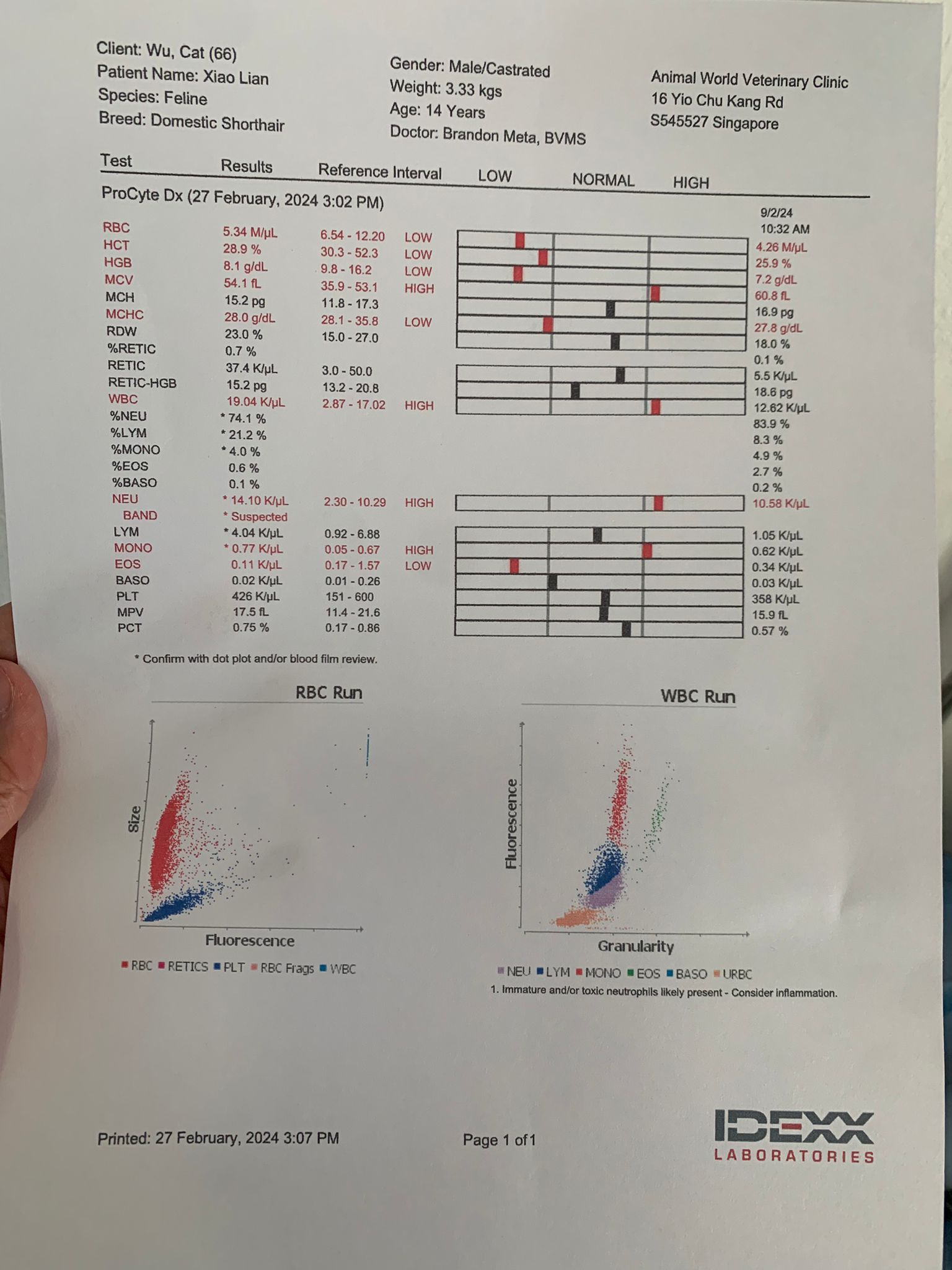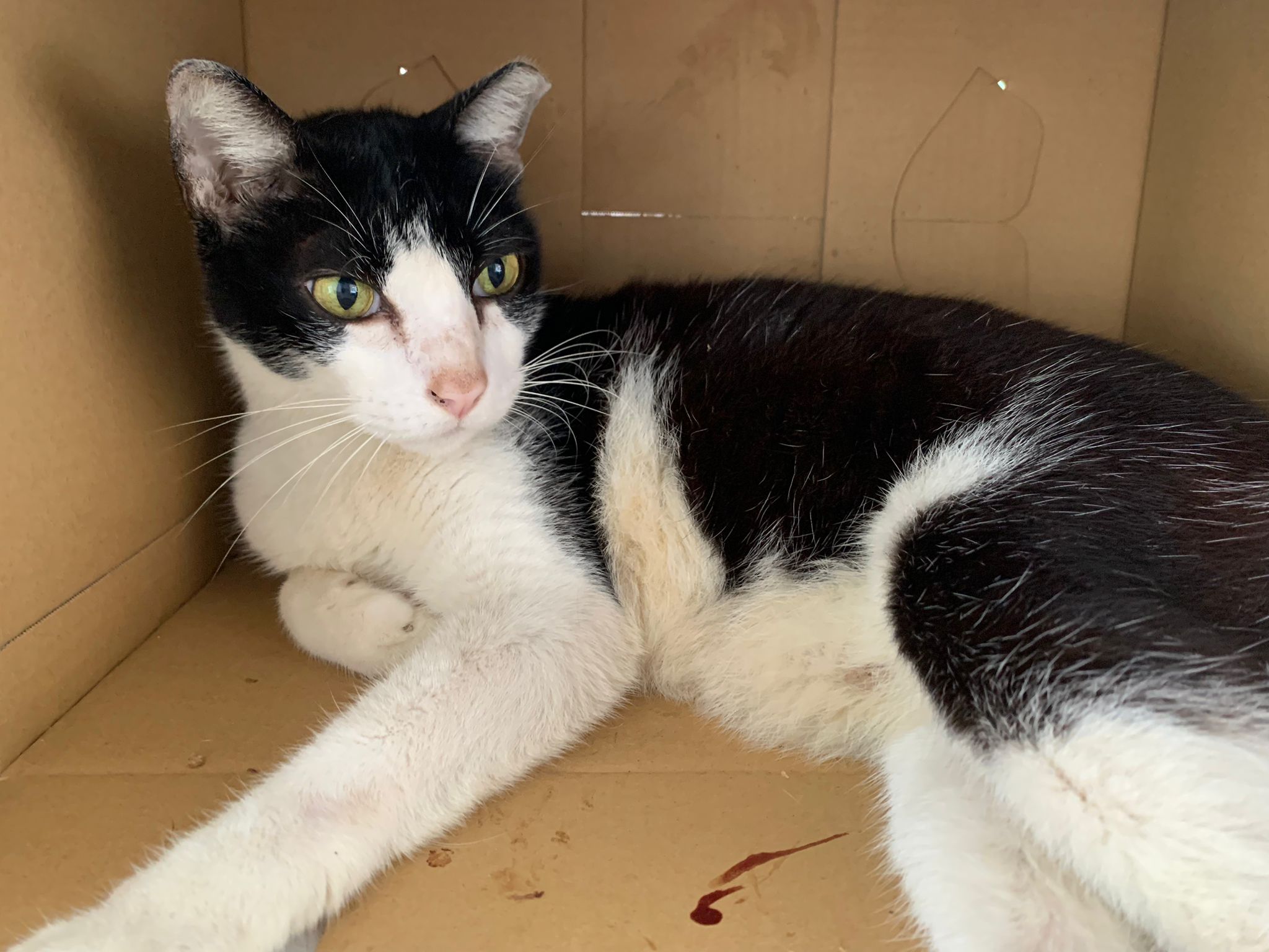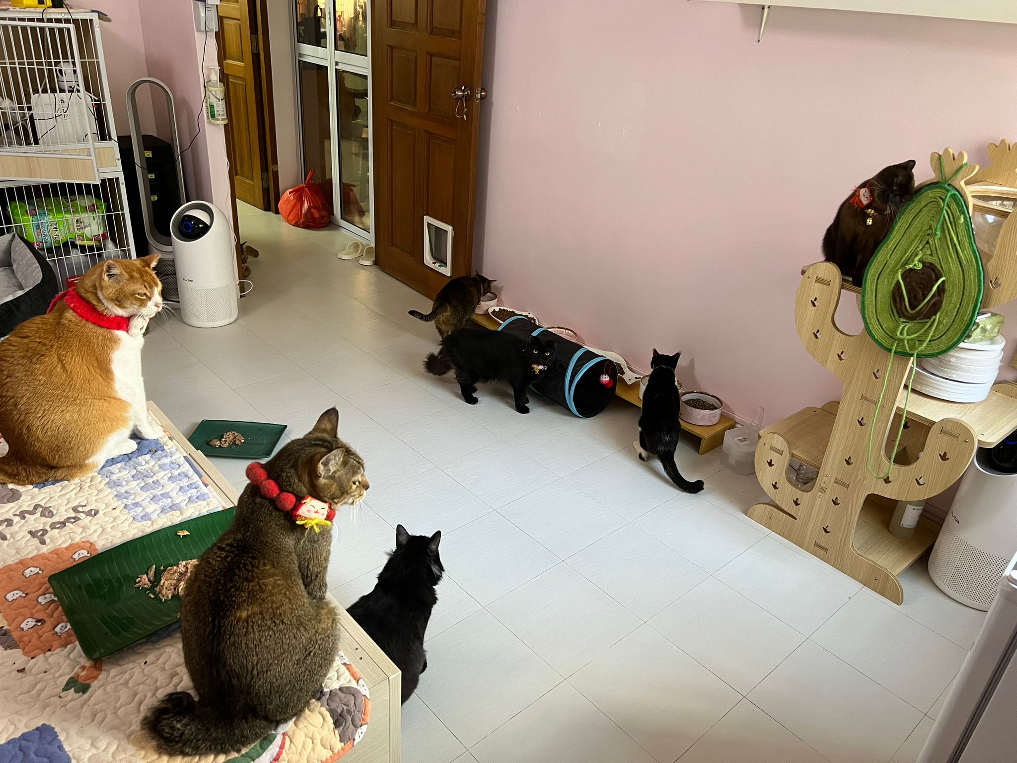Community Cat – he isn’t well, w kidney problem and pple still keep giving him nonsense food outside. Told him when I’m subcutting him at the void deck that I’ll drag as long as possible, for him to be outdoor to be in the familiar world he is in, to be w wawa, to be w the trees grass basketball court chairs letterbox he is used to. Let him enjoy. 8.2.24 is the date that no choice alr, he had been hiding under cars, lose more than 10% of weight within 10 days. Anemic and worsen kidneys. He is 猫房 cat now.