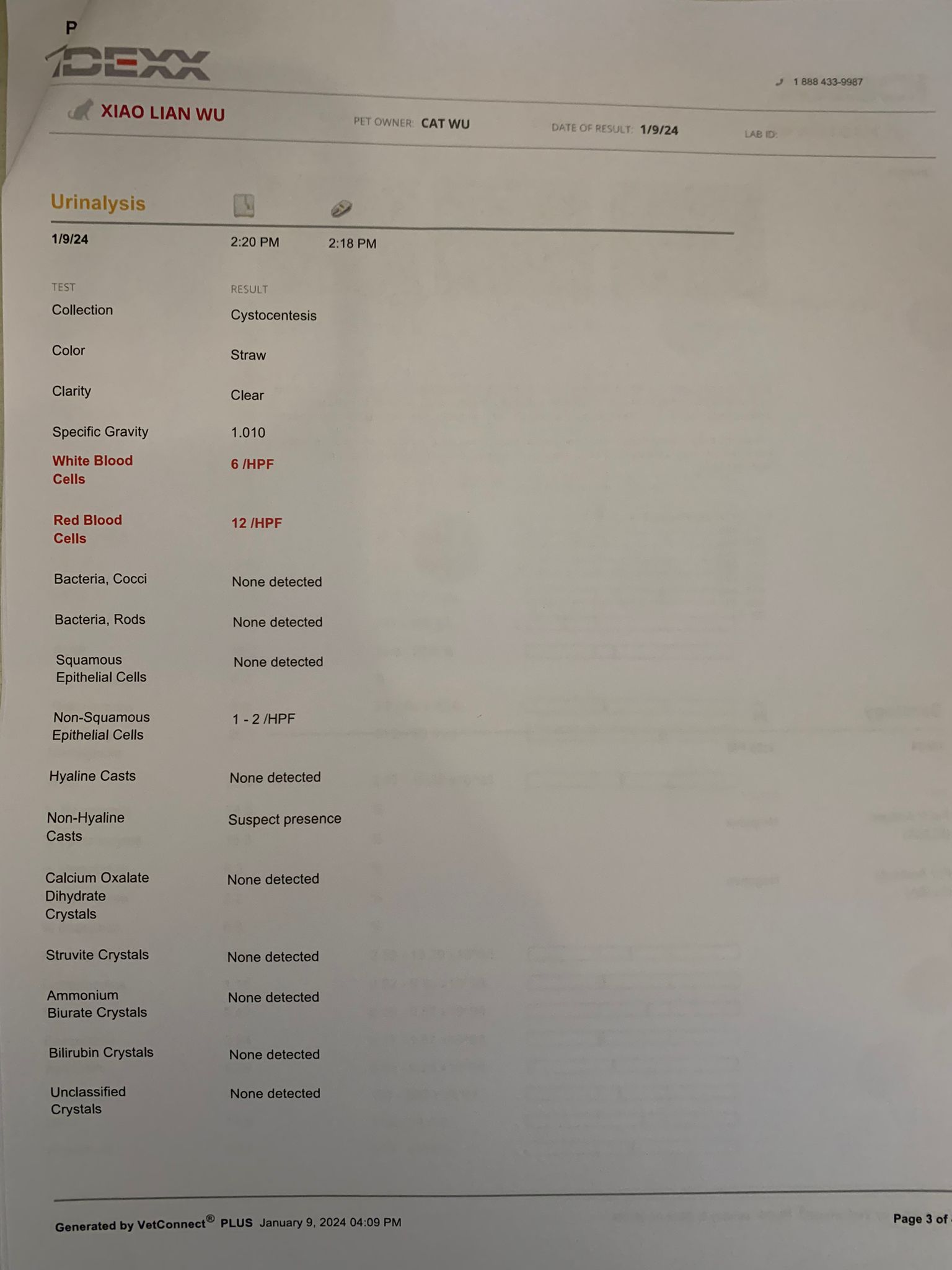 11.07am: urine analysis is out: