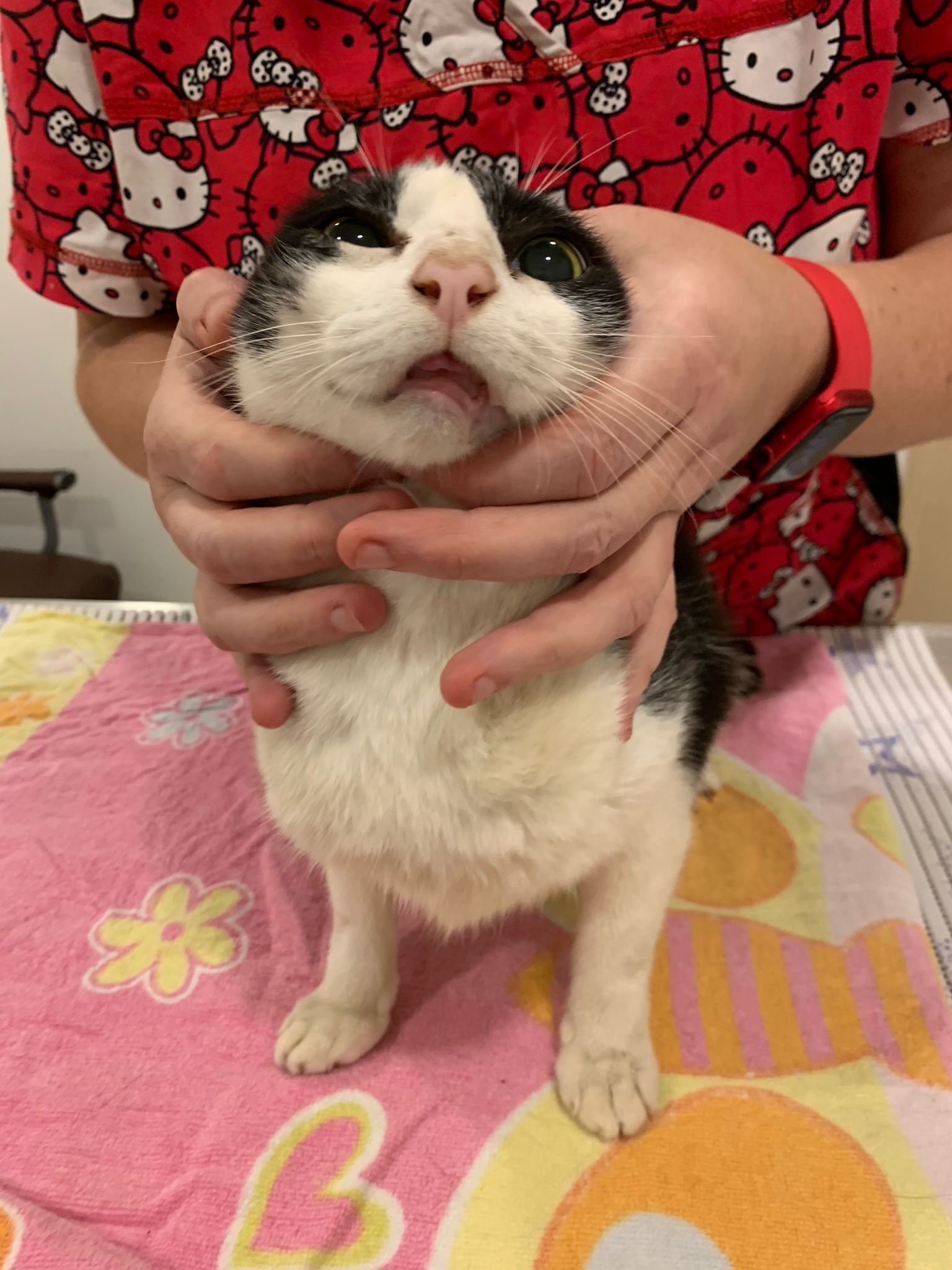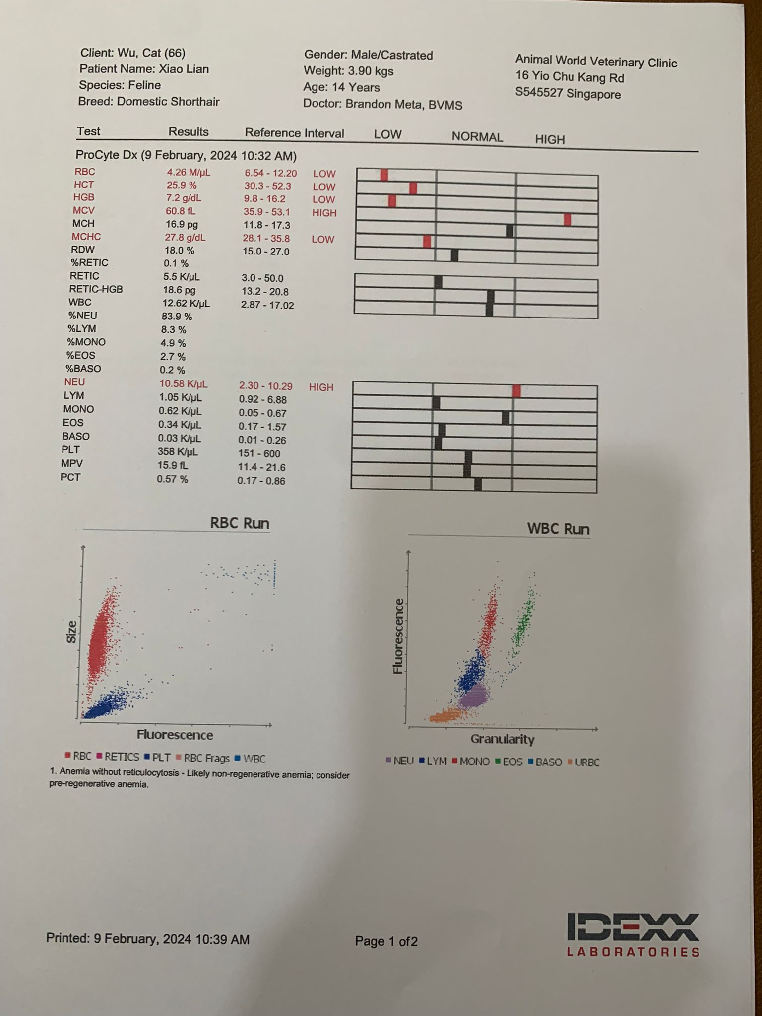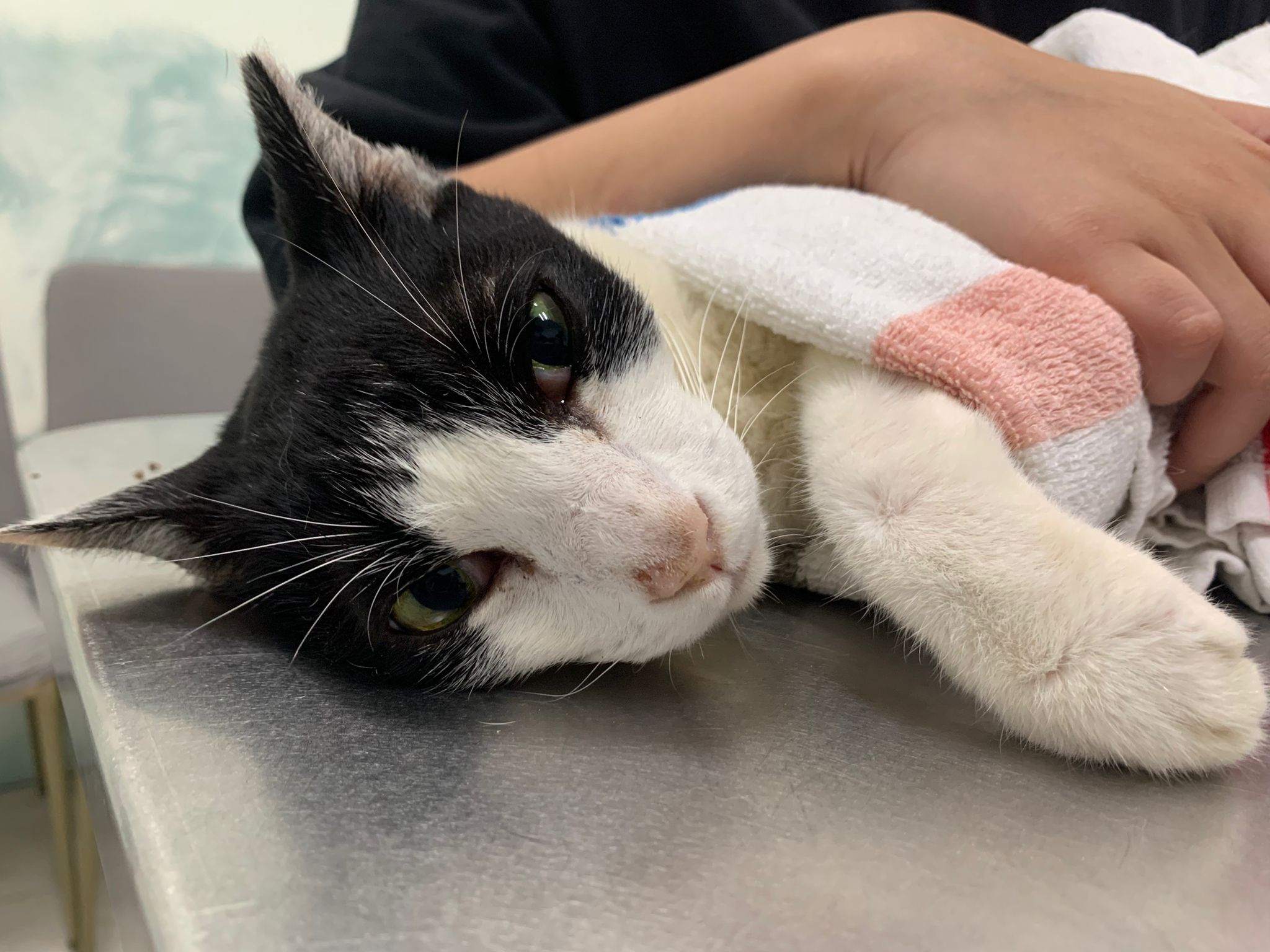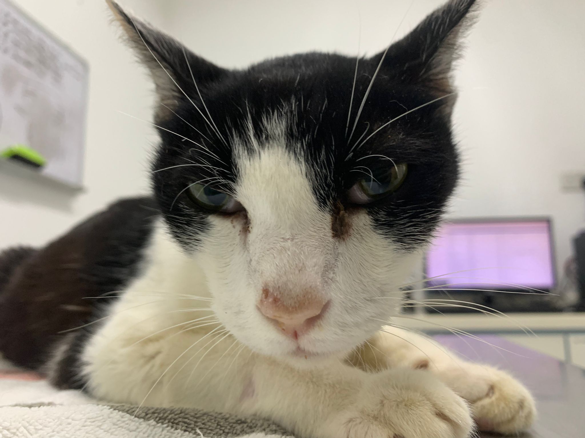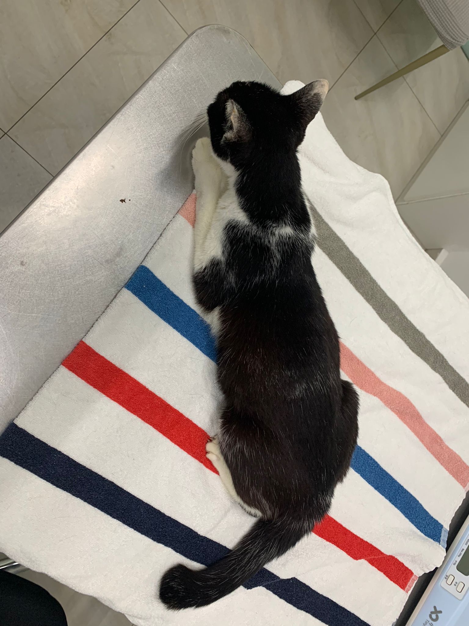 2pm+: see dr Brandon for review. 3.225kg – drop further 235g. Left Nose for have blockage I clear for him. Flu? I feel his breathing not regular – but he check again he say xl purring. Erm. So means ok?