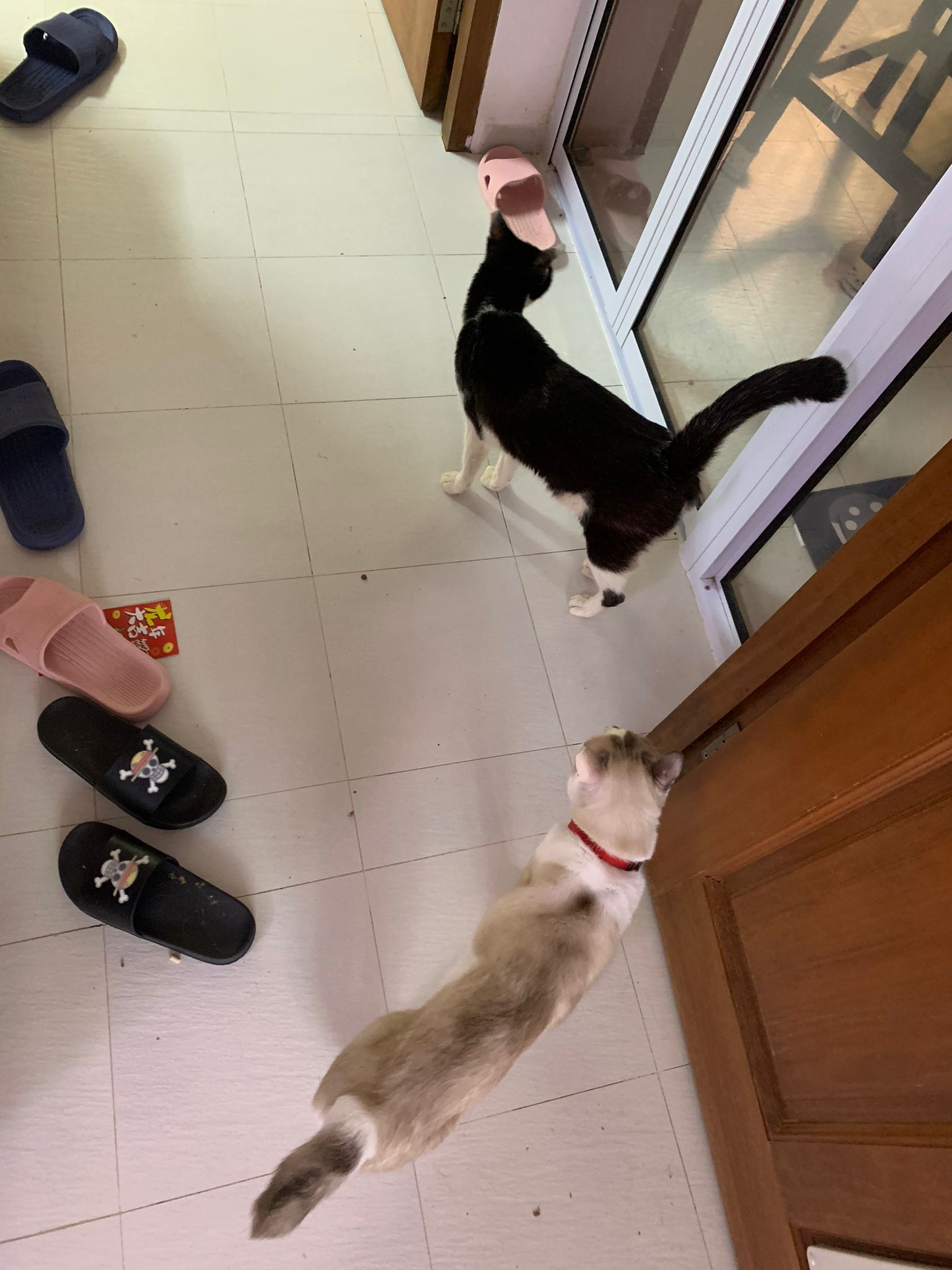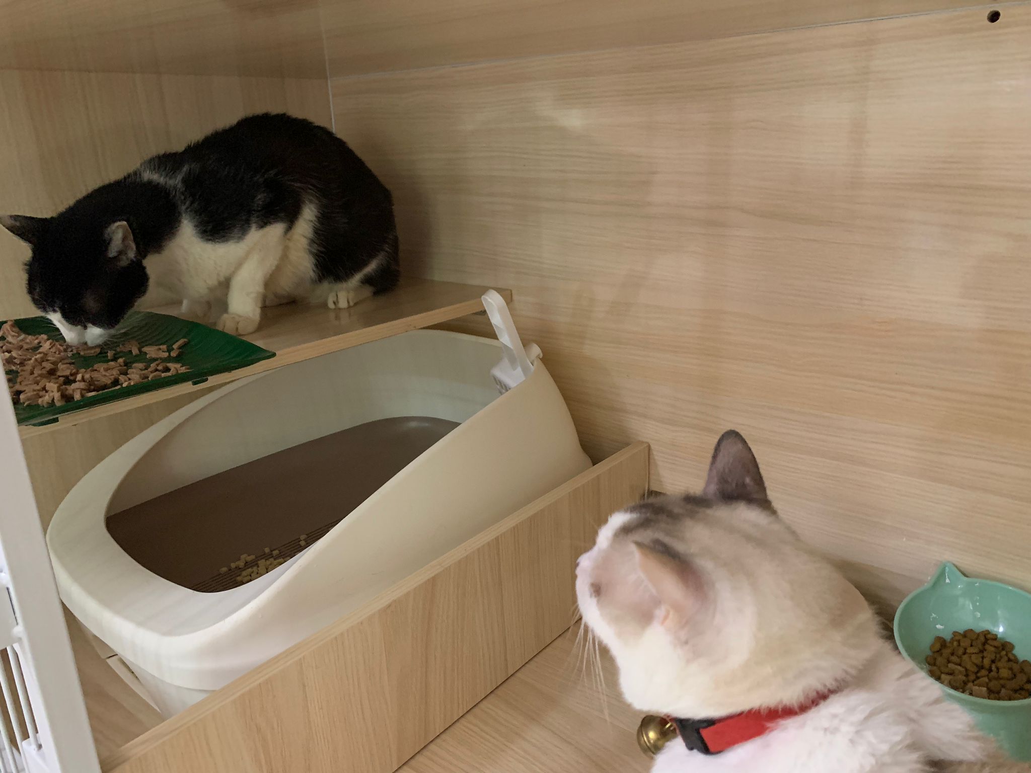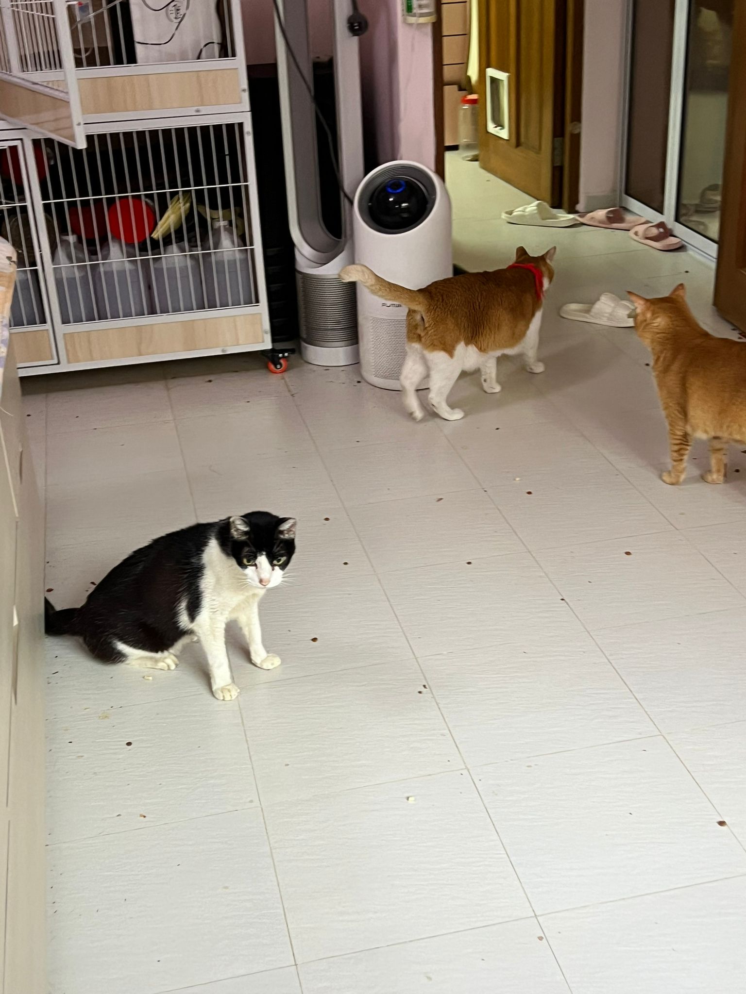10pm: saw xiao lian and xiao Hei Hei sitting tgt. Xhh eat the indoor, praise him smart cos there are lousy kibble ard too. I throw that away, XL just not happy I throw his things away. Explain to him many times alr that’s rubbish