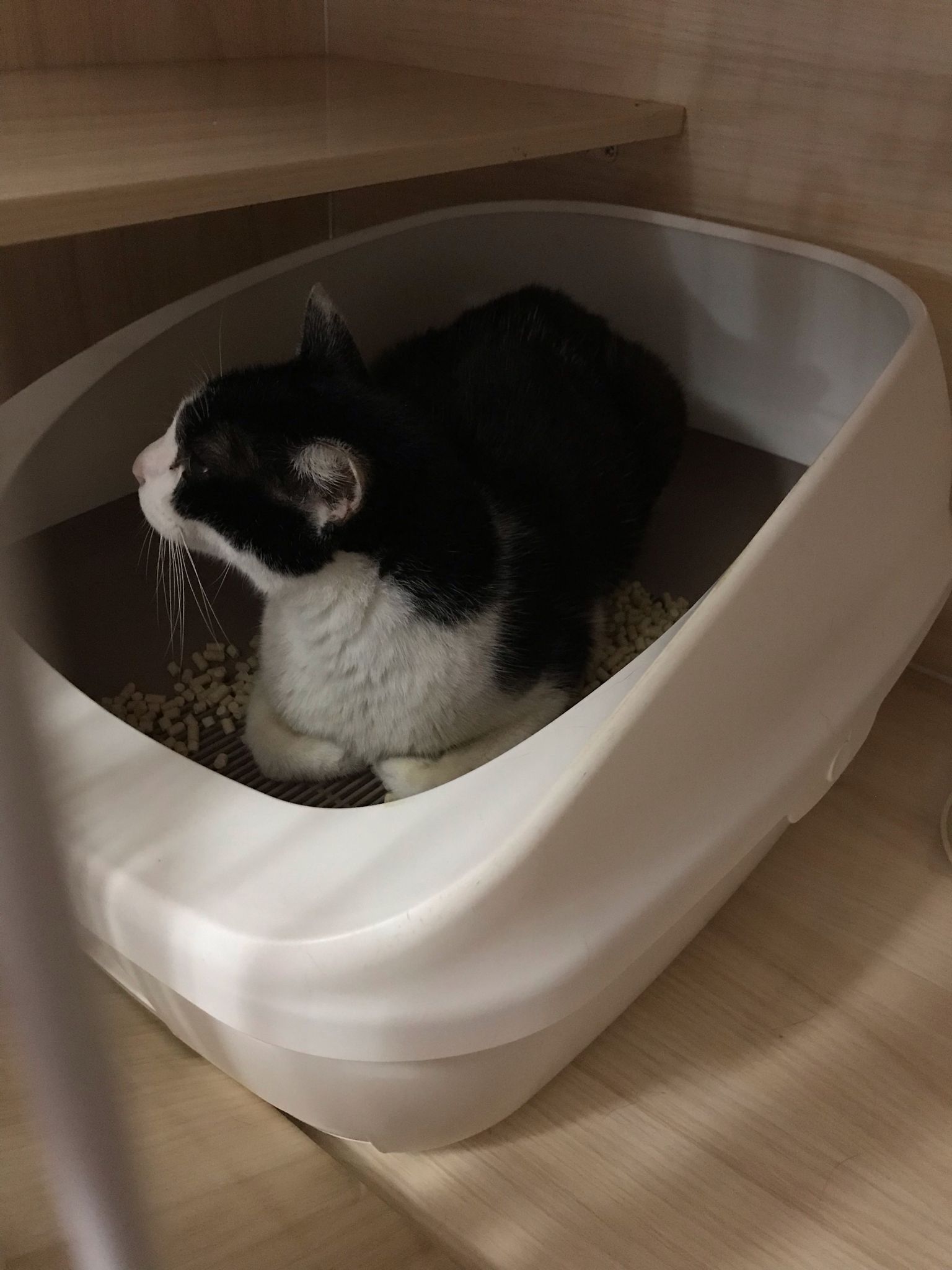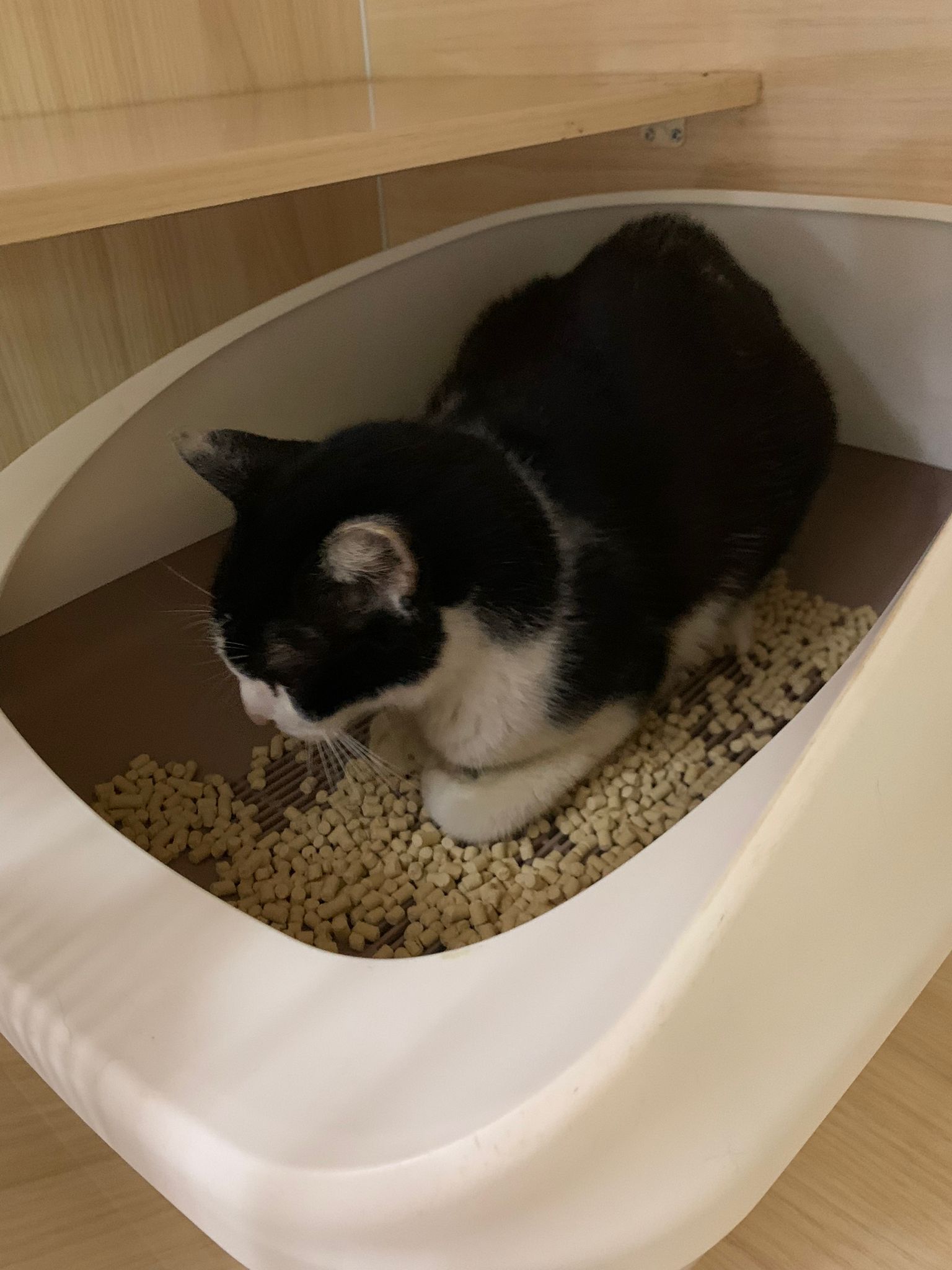 5.21pm: he is sitting on floor no further poo
