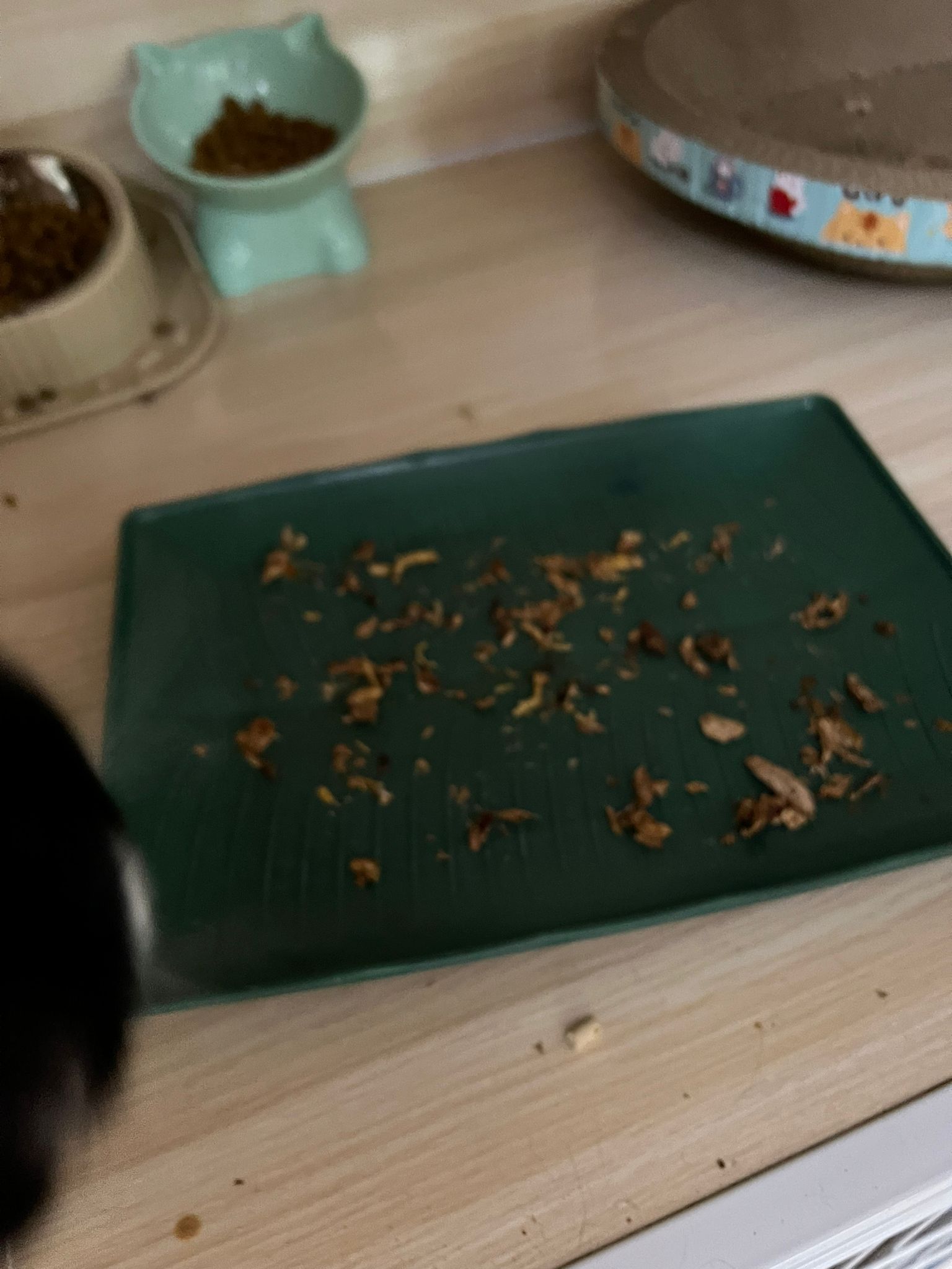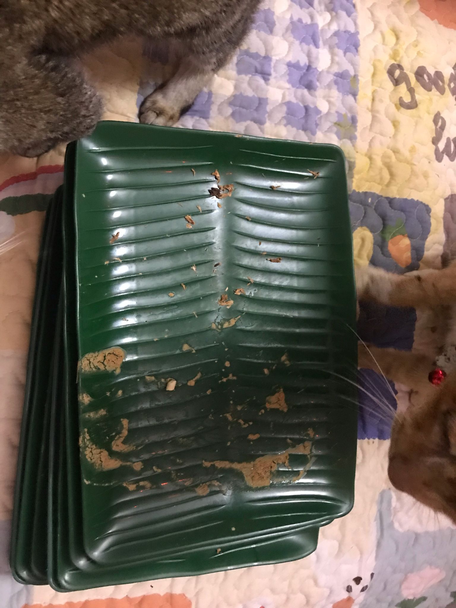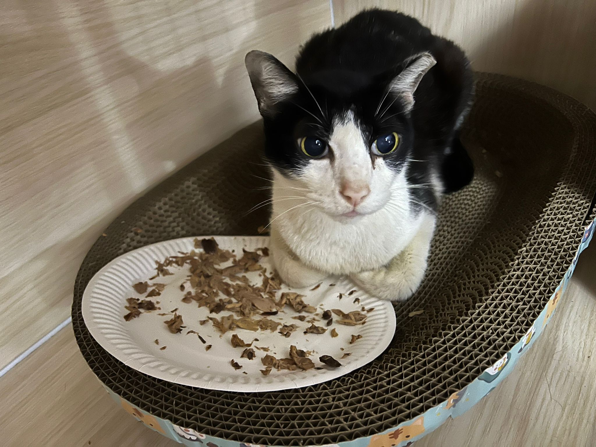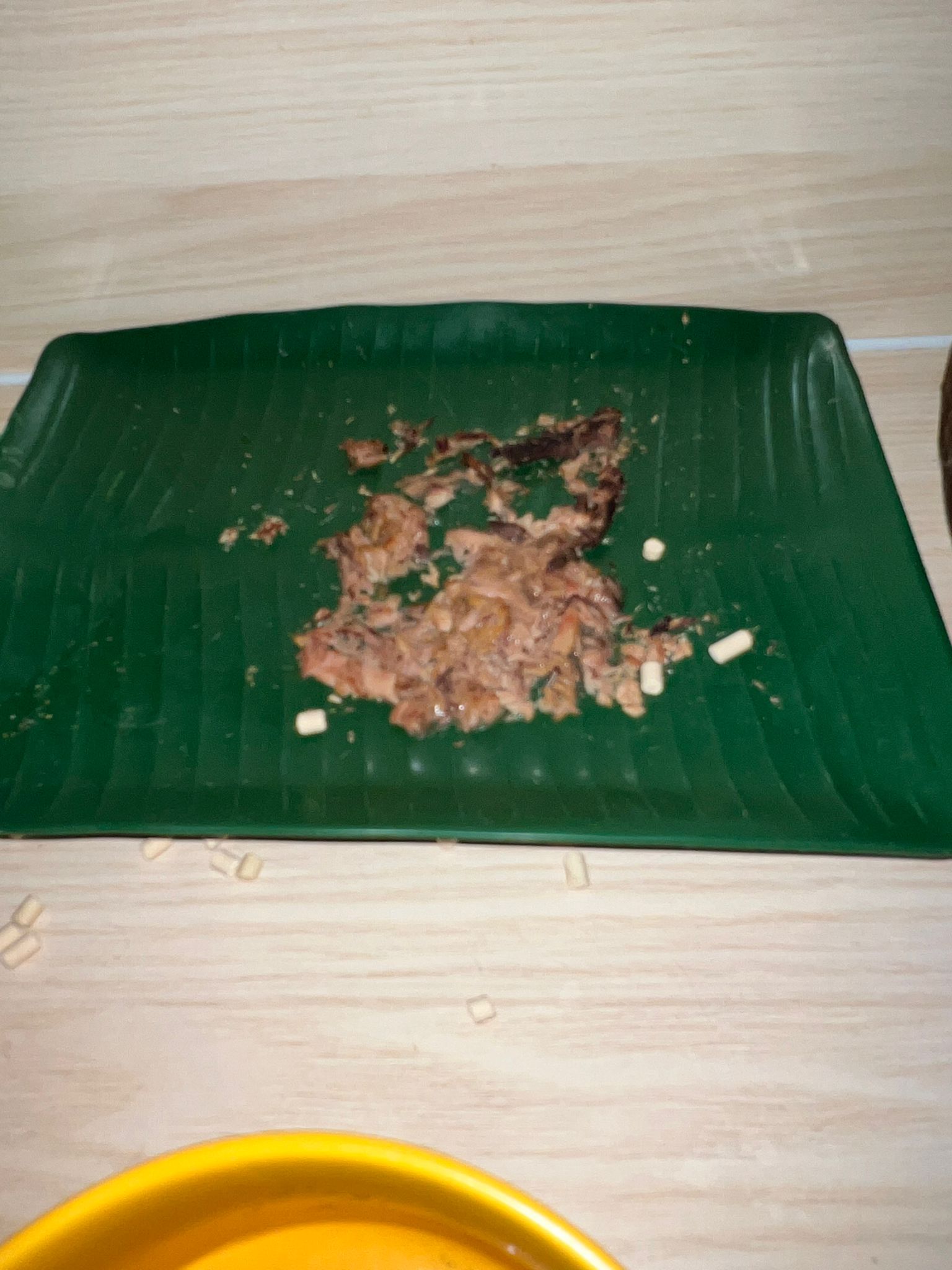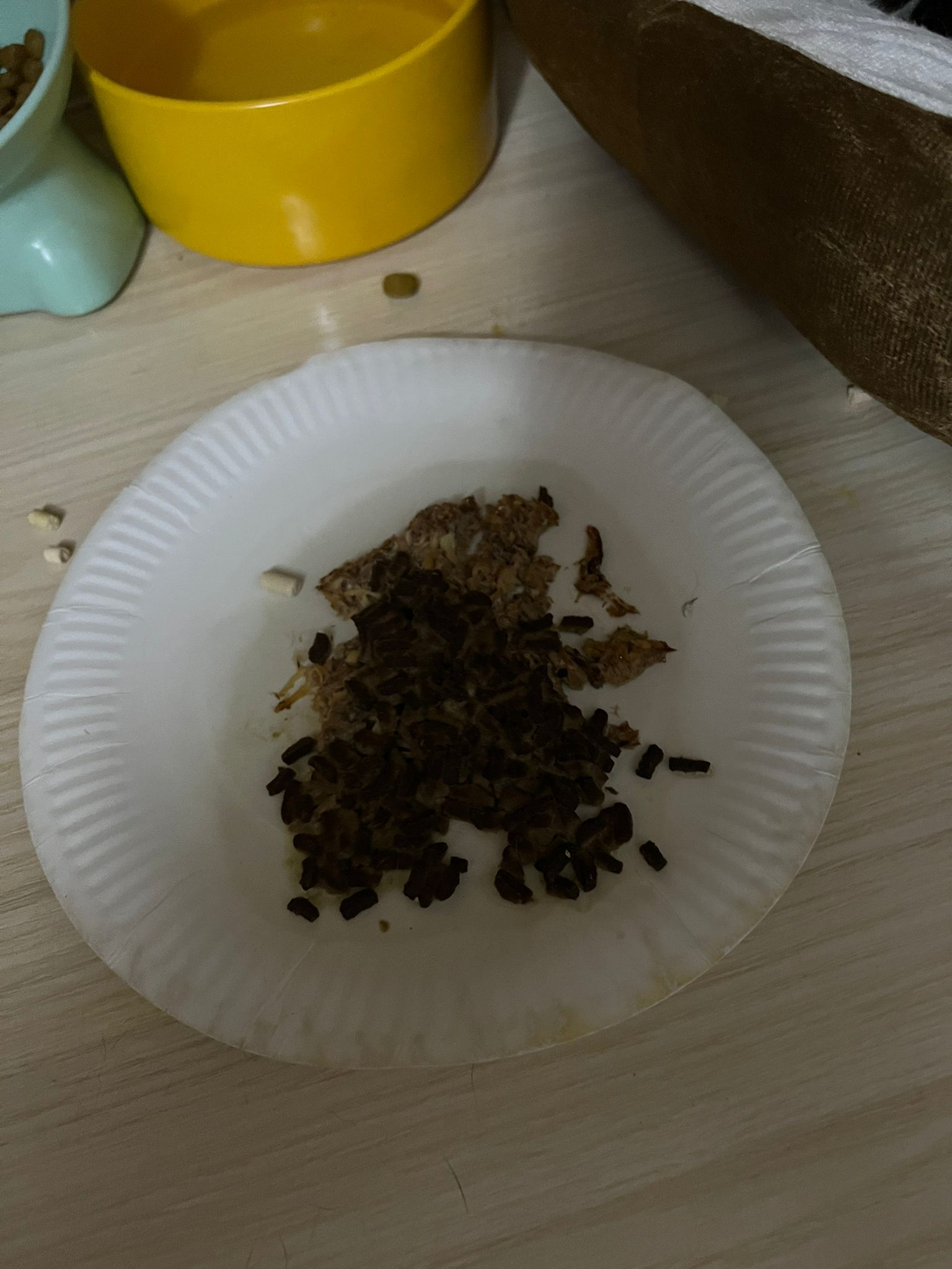 9pm: saw lousy kibble w him again, I throw and compensate him a plate of urinary w 3 Pidan smashed quail egg.