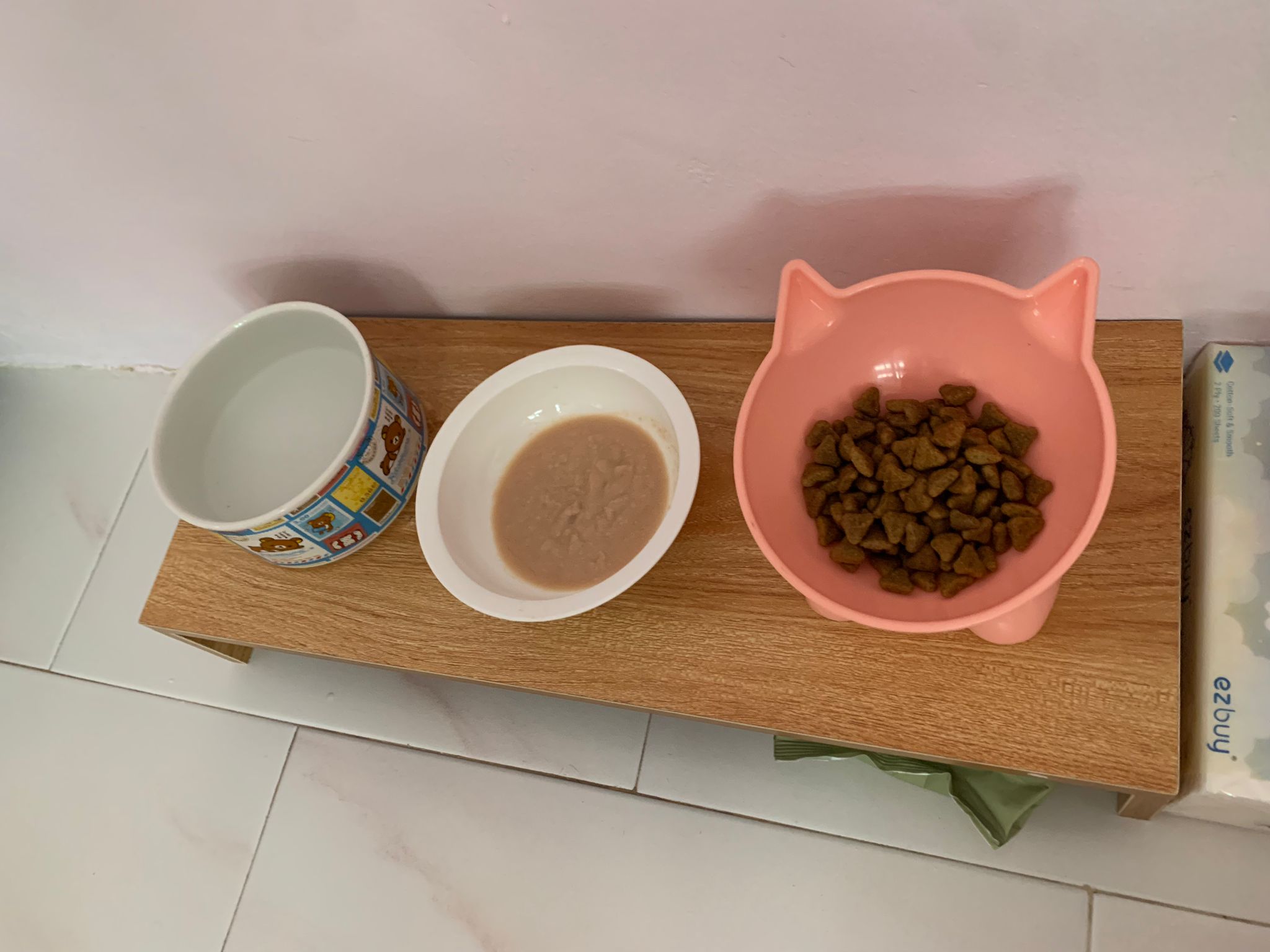 815pm: Tonight v cold, I saw xiao lian, XCL n hei hei like v hungry, Duno auntie coming what time so I feed them. Each plate I put mixture of 3 food so let them choose. Xiao lian like to eat tuna w crab meat ah.