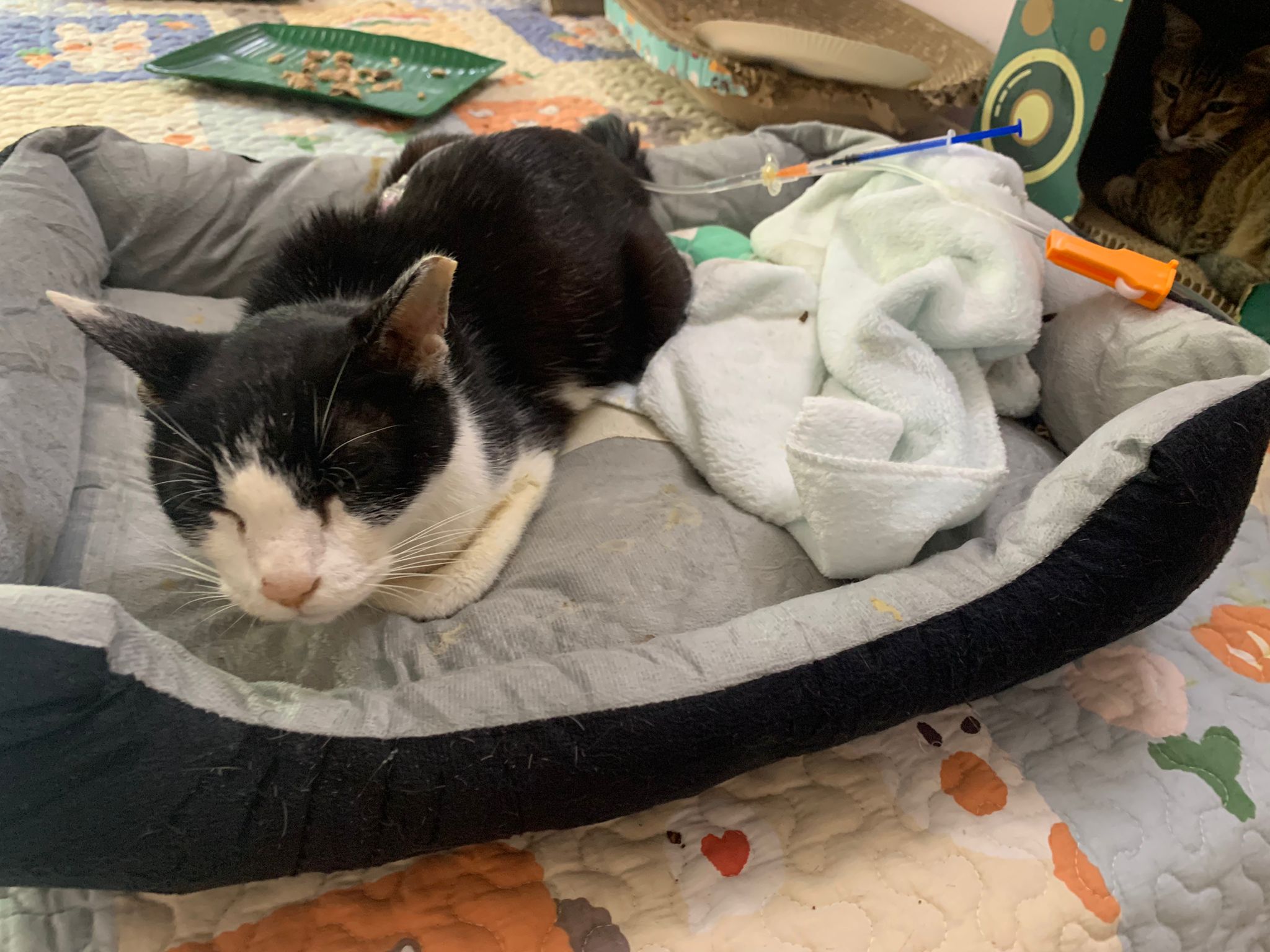 I’m worried until I can’t sleep, I don’t know if putting in a o tube is the good choice today or not. If helping him is a correct move or not (now raining heavily, he might alr be dead if I didn’t take him in b4 LNY, if alive he is shivering downstairs w such rain) now he indoor can sleep in bed, can eat anytime he like (but now he can’t eat, something wrong w throat, I scare he vomit later on on tube)