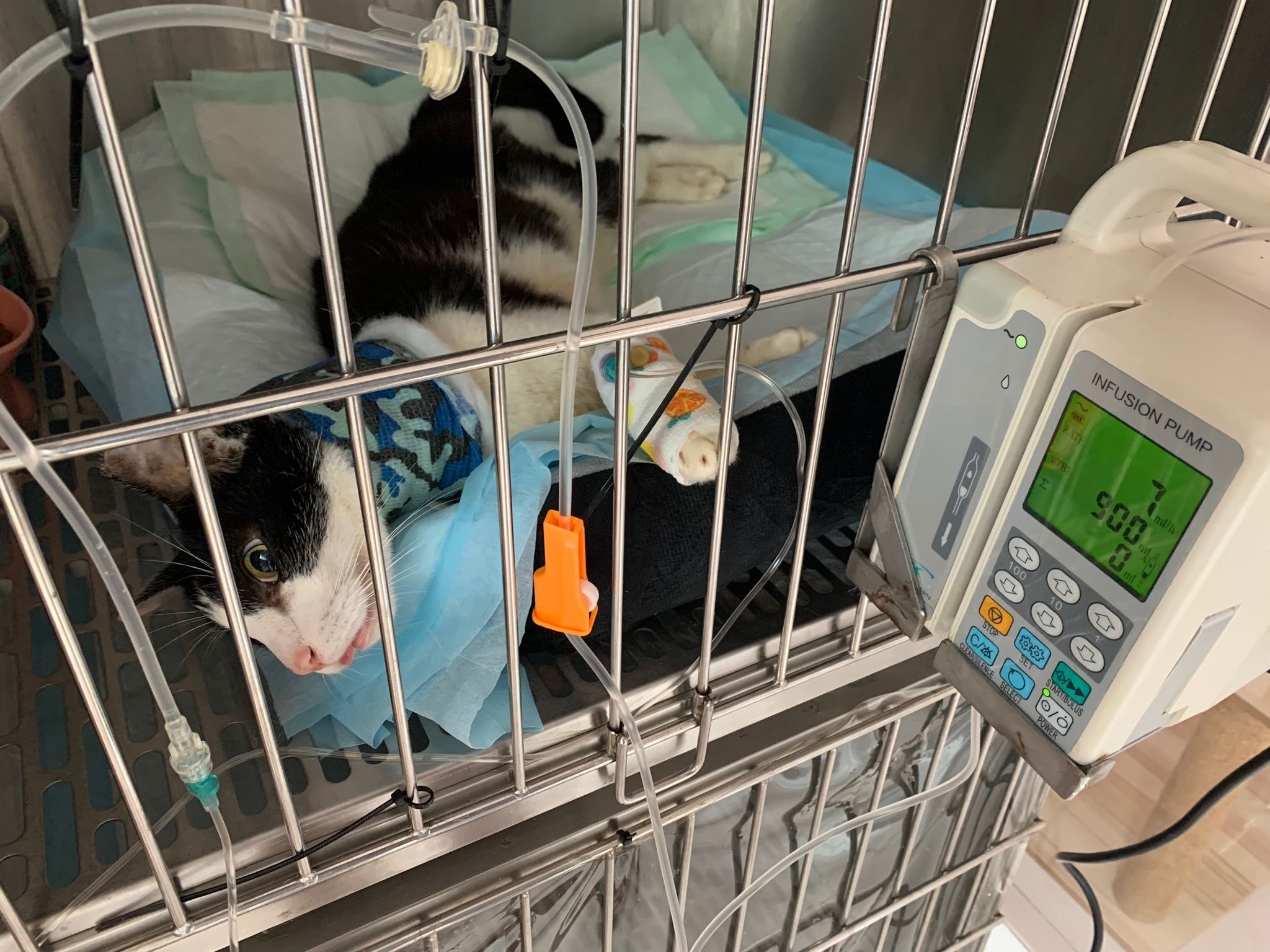 He can walk and stand alr. Walk to kitchen n I carry him to cage, lie in bed. drip rate 7ml/h. I’m thinking of upping to 10 at least. Thinking only. Remain stable at 7ml/h now. Maybe Tmr all stable I might go 8ml/h stabilised.